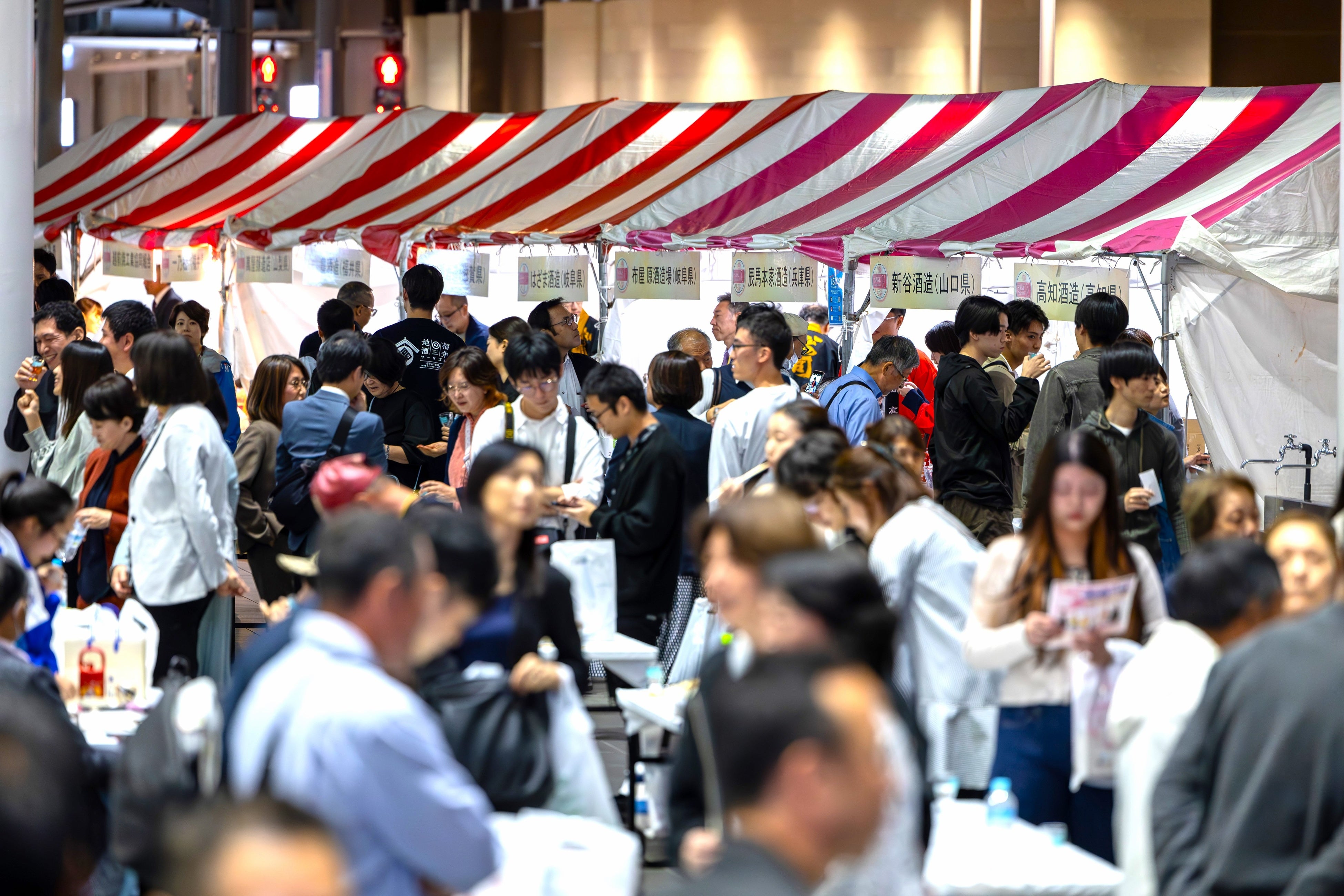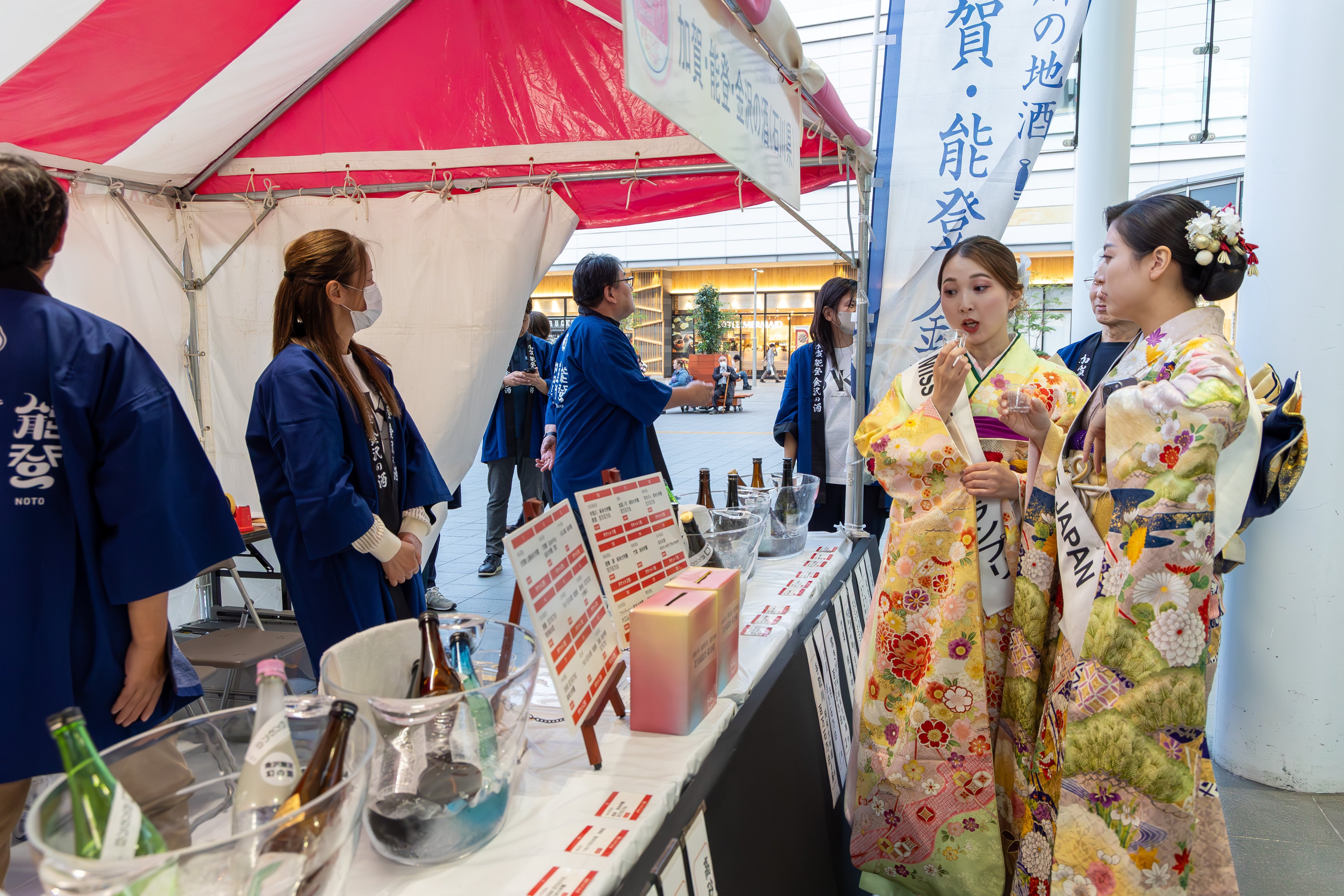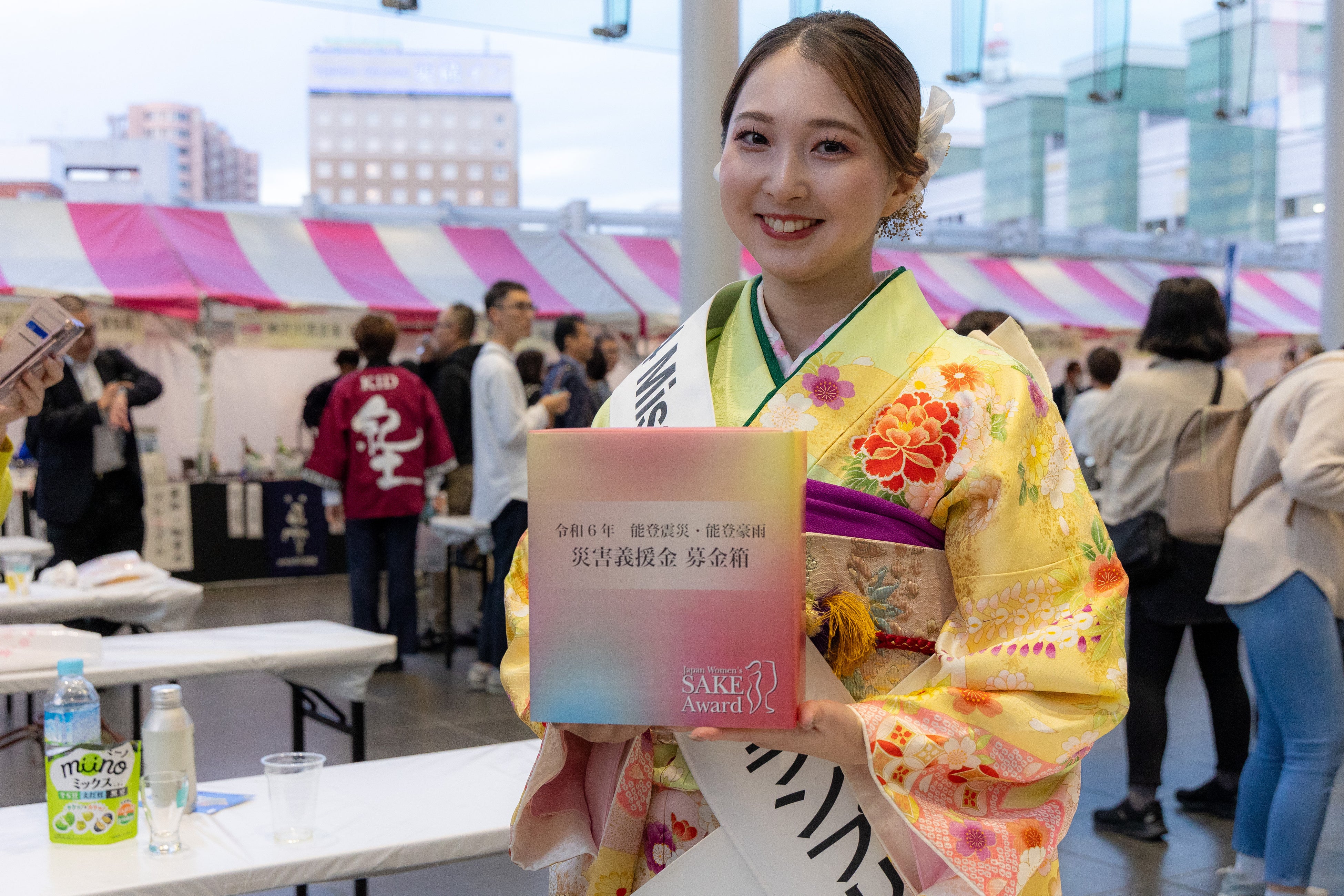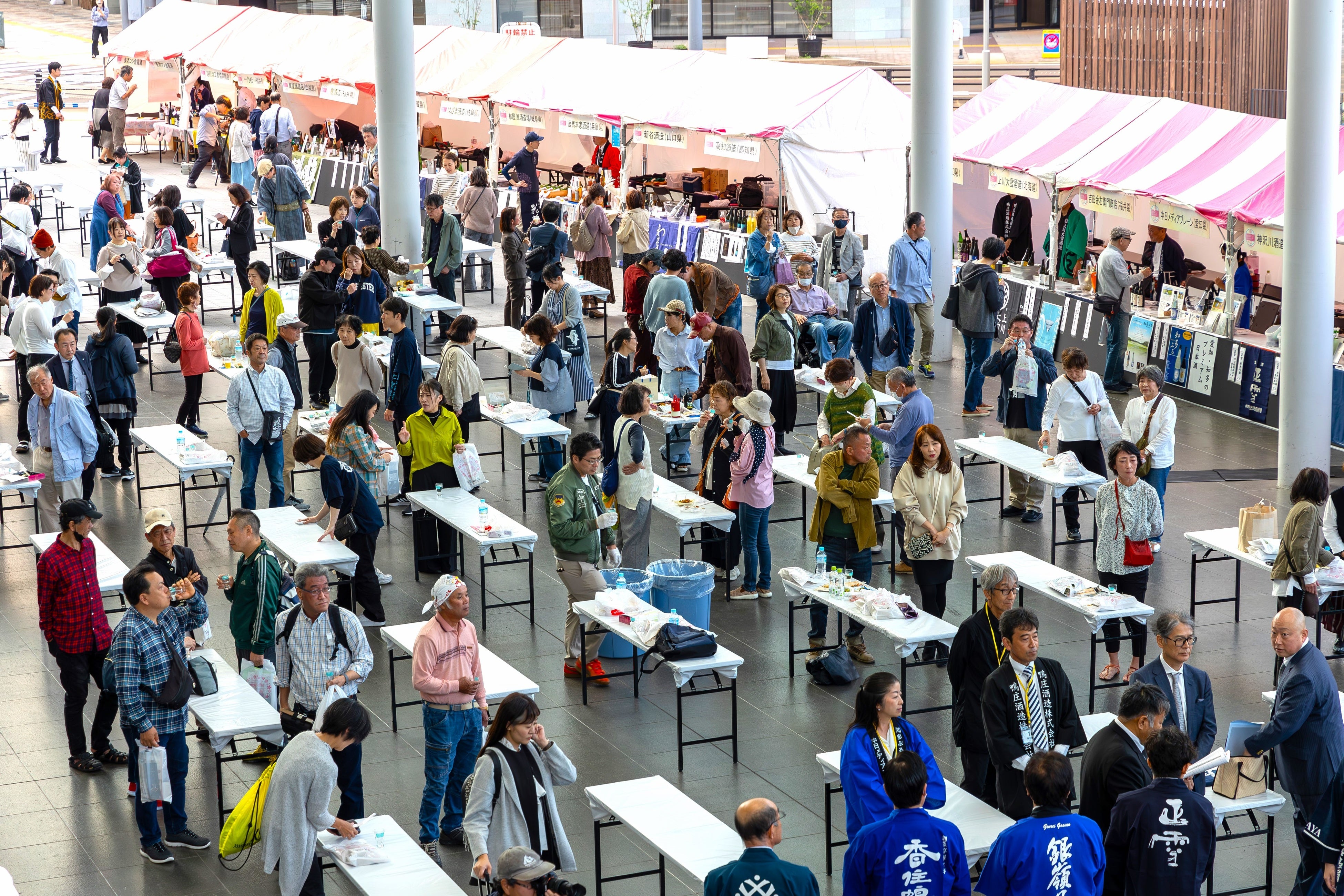 国内初の⼥性審査員による日本酒品評会「Japan Women’s SAKE Award~美酒コンクール~(通称:美酒コン)」。「地酒のある地域の活性」という理念から、第2回は福井・北陸大会となりました。10月25日(金)の表彰式では、金賞受賞銘柄の表彰とともに、6部門(*注)の【TOP OF THE BEST】(6社)、「客室乗務員(CA)賞」「ソムリエ賞」「女将賞」「アマチュア賞」「ラベル賞」(WEB投票)の特別賞(各1社)、そして、今年の最高峰である『美酒 of the Year 2024』(1社)の発表と表彰が行われました。試飲ブースが広がる会場:ハピテラスには、好天のもと約1,000人の来場者が詰めかけ、たくさんの人に見守られる華やかな表彰式となりました。