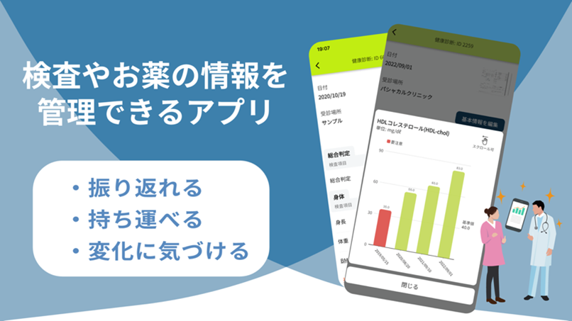 パシャっとカルテは、健康にまつわるPHRデータを管理できる一般消費者向けのアプリで、健康診断や検査の結果、病院などで処方されるお薬などの医療情報はもちろんのこと、血圧や体重・体温などの日々の健康状態を、ユーザー様がご自身のスマートフォンで管理することが可能です。「操作性」や「使いやすさ」から年齢問わず幅広い世代の方にご利用いただいております。