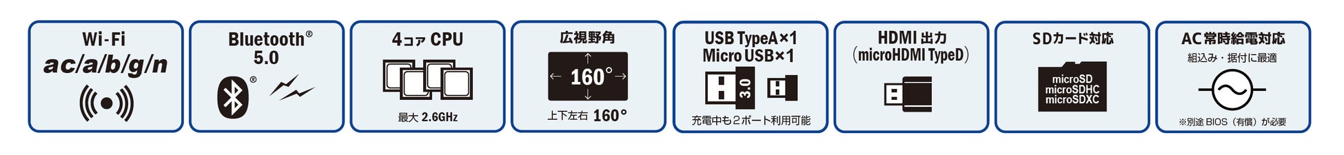 特定業務用途専用のOSであるWindows 10 IoT Enterprise LTSC 2019 (64bit)を搭載。勤怠管理やPOSレジ用などある用途専用に開発されたソフトウェアは、OSの機能更新の影響を受けずに長期使用ができるとともに、品質面では最新かつ最善の状態を保持して安定的に使い続けることが可能です。また、当OSに搭載された各種のロックダウン機能によるセキュリティ強化により、実使用環境下でも高い安全性が確保できます。