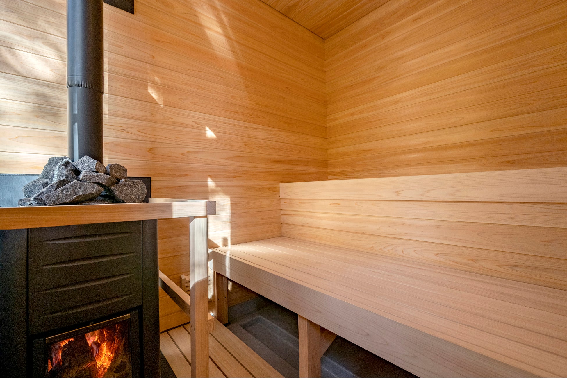 薪式サウナヒーターを備えたサウナトレーラーは、薪の投入量によって最高110℃程度まで温度調整が可能で、熱したサウナストーンに水をかけて水蒸気を発生させる「ロウリュ」もお楽しみいただけます。水風呂も完備。