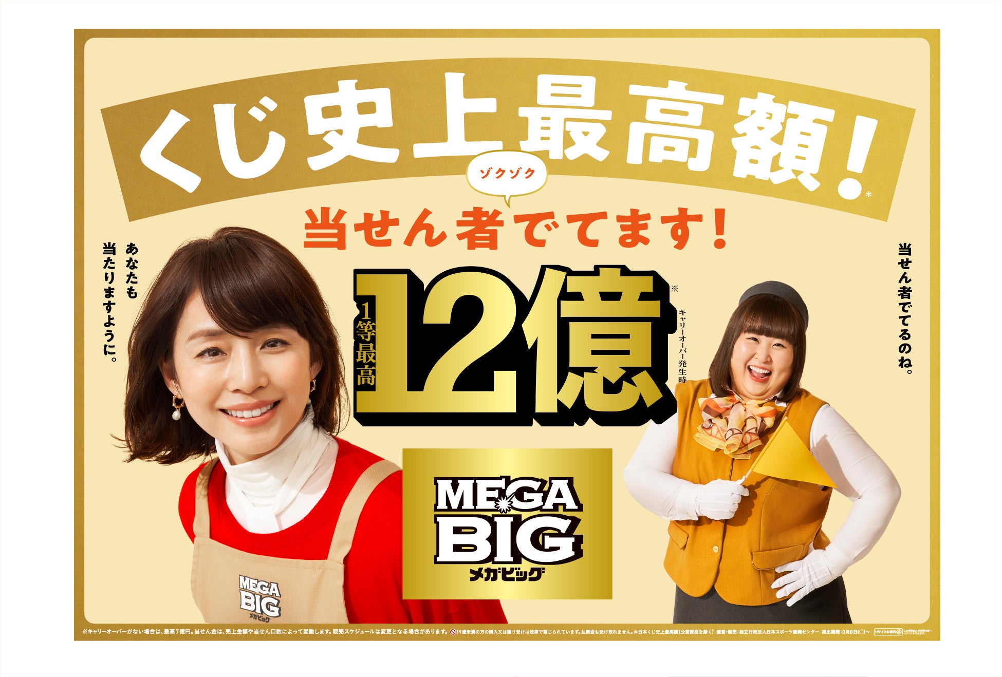 独立行政法人日本スポーツ振興センター(JSC)は、1口300円で1等最高当せん金が日本くじ史上最高額の12億円※1となる、スポーツくじ「MEGA BIG」を毎週販売※2しており、これまでに10口の1等12億円当せんが誕生※3しております。