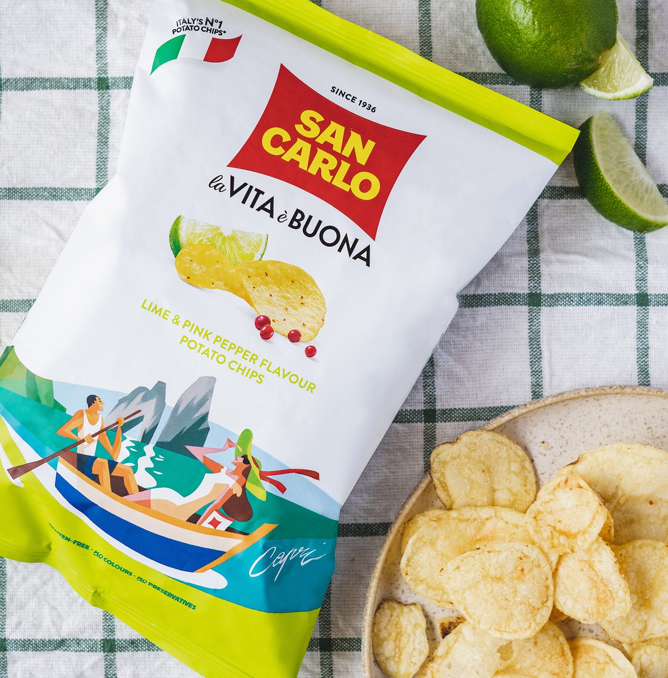 ◆新商品◆イタリアNo.1チップスブランド〈サンカルロ〉より待望の新フレーバー[ライム&ピンクペッパー]が新登場