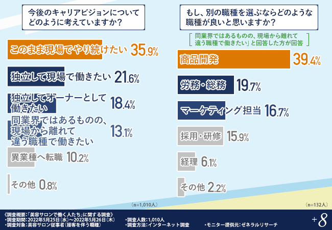 【美容サロン従事者の本音】今後のキャリアビジョンとして、このまま現場で働きたいと考えている方が最多!