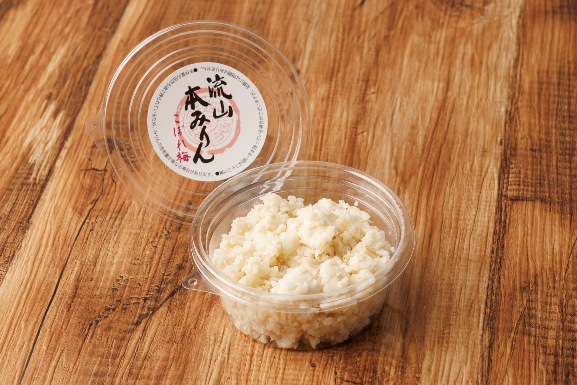 「こぼれ梅」とは、みりんを搾った際に生まれる搾り粕です。梅の花に似た見た目からその名がつき、ほのかな甘みと粒感が特徴。古くはおやつ代わりにも食されてきました。大量生産のみりんでは副原料が多く搾り粕はほとんど残らず、「こぼれ梅」は伝統製法を守る蔵元でしか生まれない希少な食材です。甘酒や漬物、煮物など幅広く活用され、発酵の恵みを感じられる食文化の一部として大切にされています。