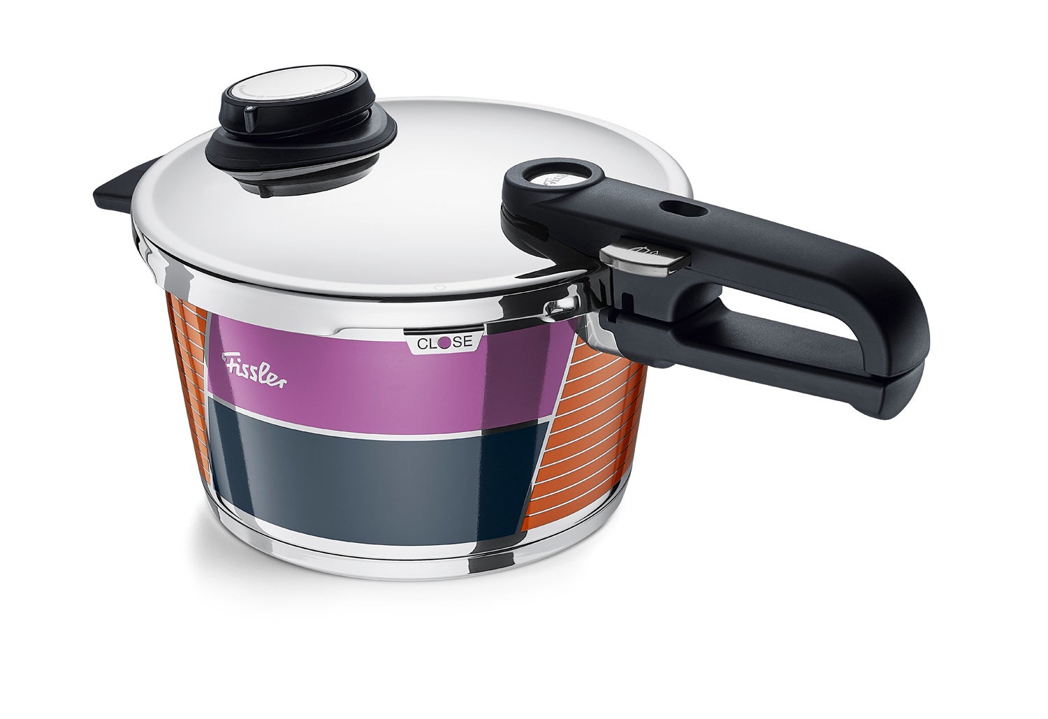 特別な年の記念にふさわしい特別な製品として、フィスラーが圧力調理で革命を起こした1950年代のモダンアート、ブロッキングデザインや当時のトレンドカラーにインスパイアされたドレスアップを考案しました。職人の手で一台一台丁寧に施されたデコレーションは、あなたのキッチンに彩りをお届けします。