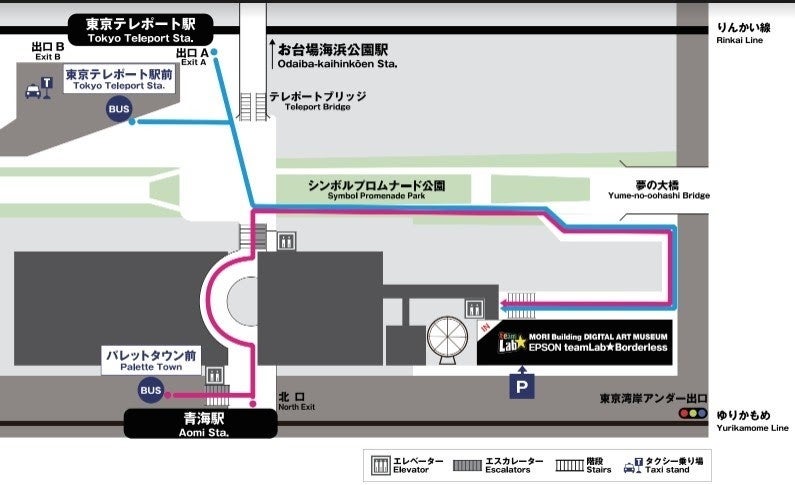 パレットタウンの開発事業の一部進捗に伴い、最寄駅(東京テレポート駅・青海駅)から当館までのアクセスルートが、4月1日より変更となります。