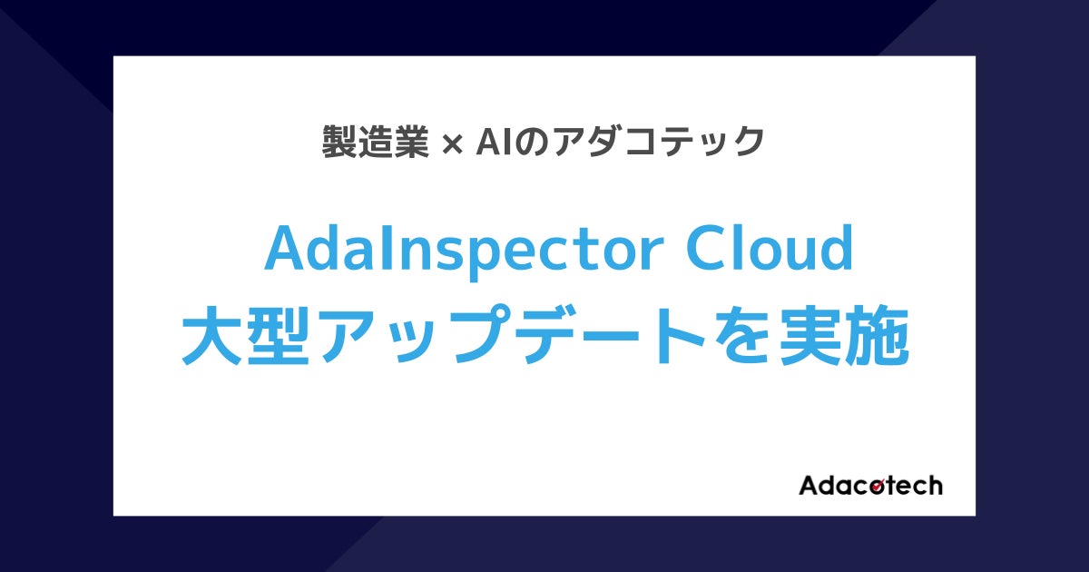 株式会社アダコテック(本社:東京都千代田区、代表取締役:河邑 亮太、以下、アダコテック)は、2023年1月18日に製造業の検査・検品工程を自動化するAdaInspector Cloudの大型アップデートを実施しました。本アップデートは、AutoMLによる自動学習を改良し、より高精度なモデル作成環境をご提供することを目的としております。