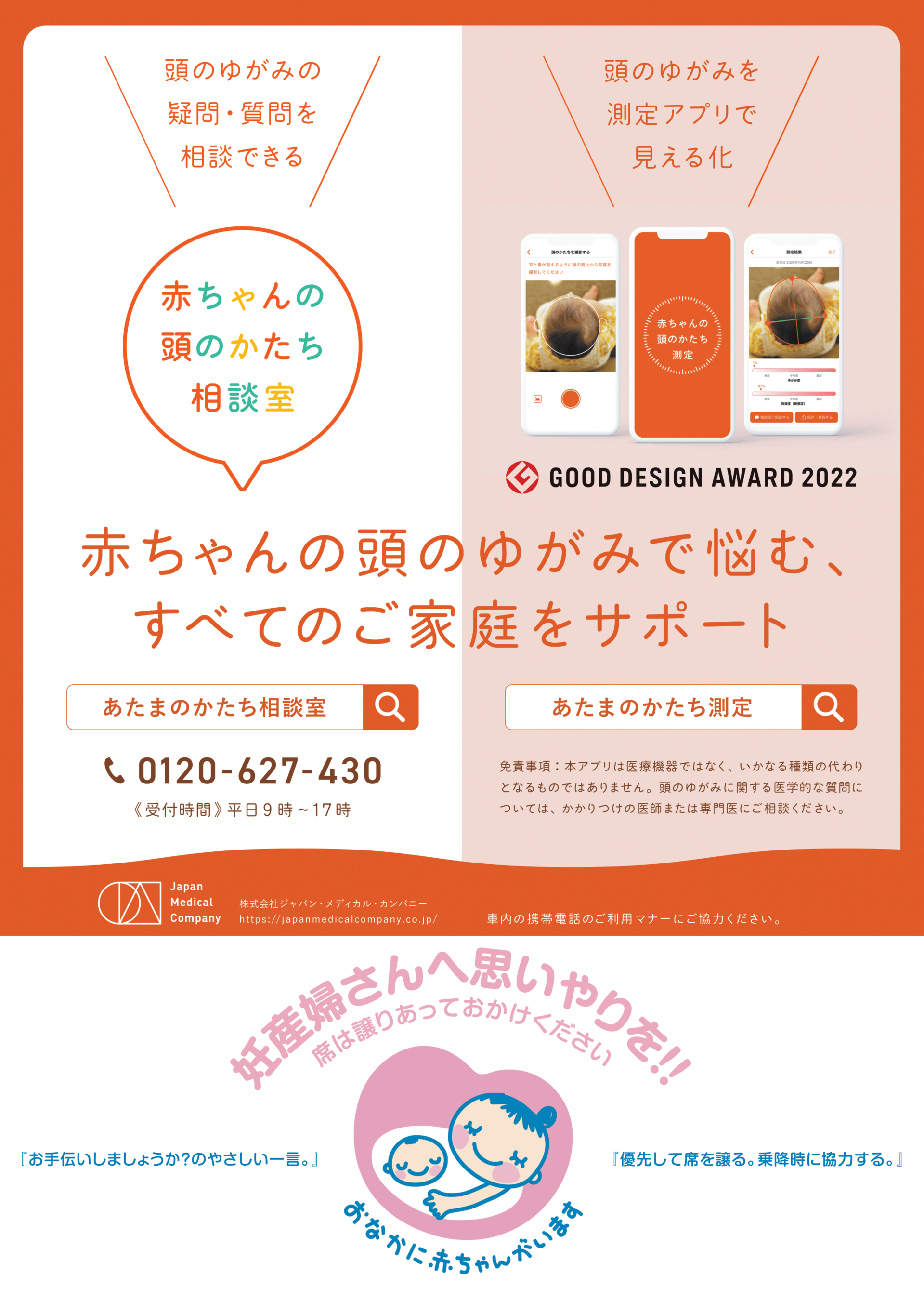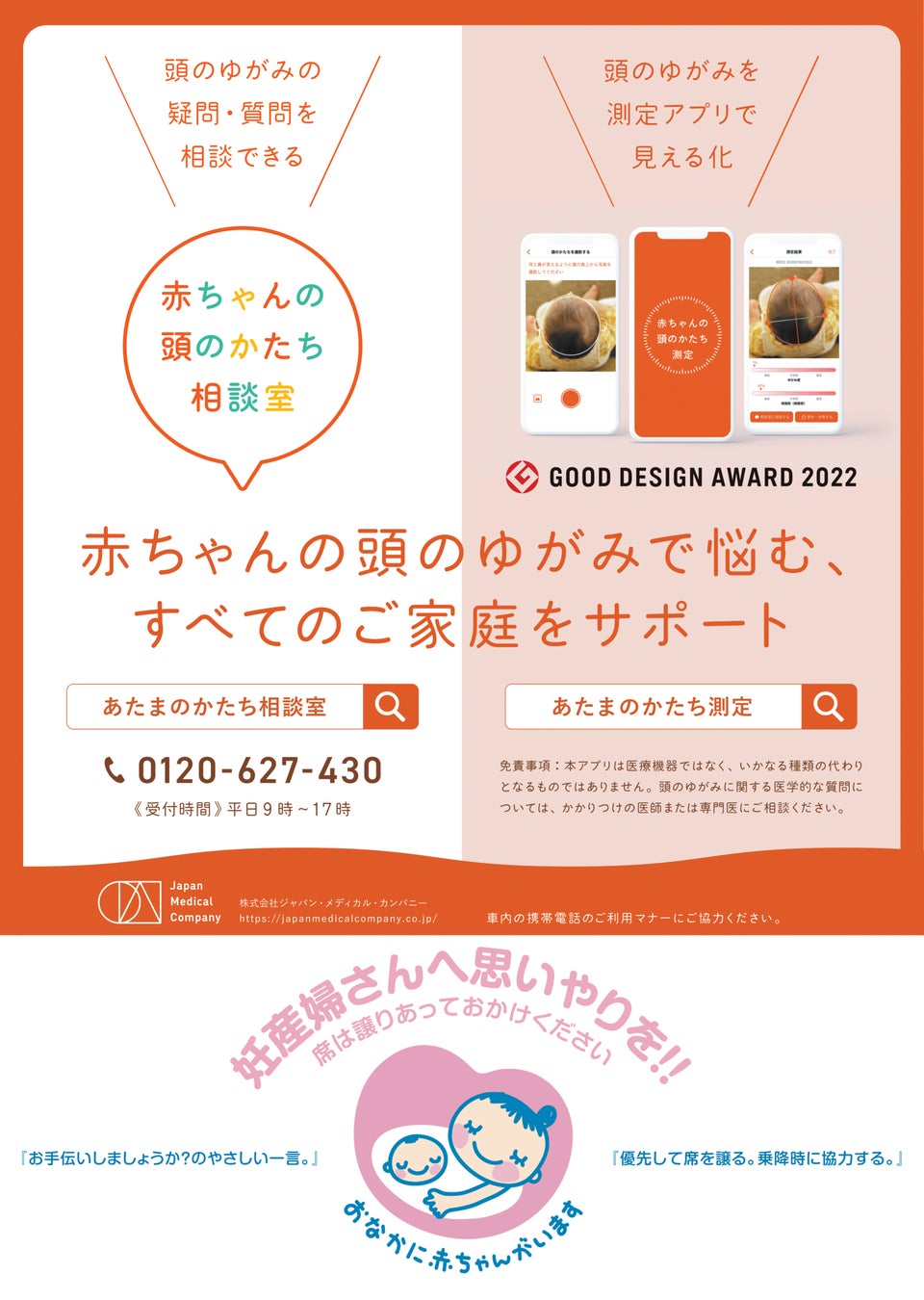 「赤ちゃんの頭のかたち相談室」と「赤ちゃんの頭のかたち測定(アプリ)」がマタニティマークとのタイアップ広告を掲出開始!