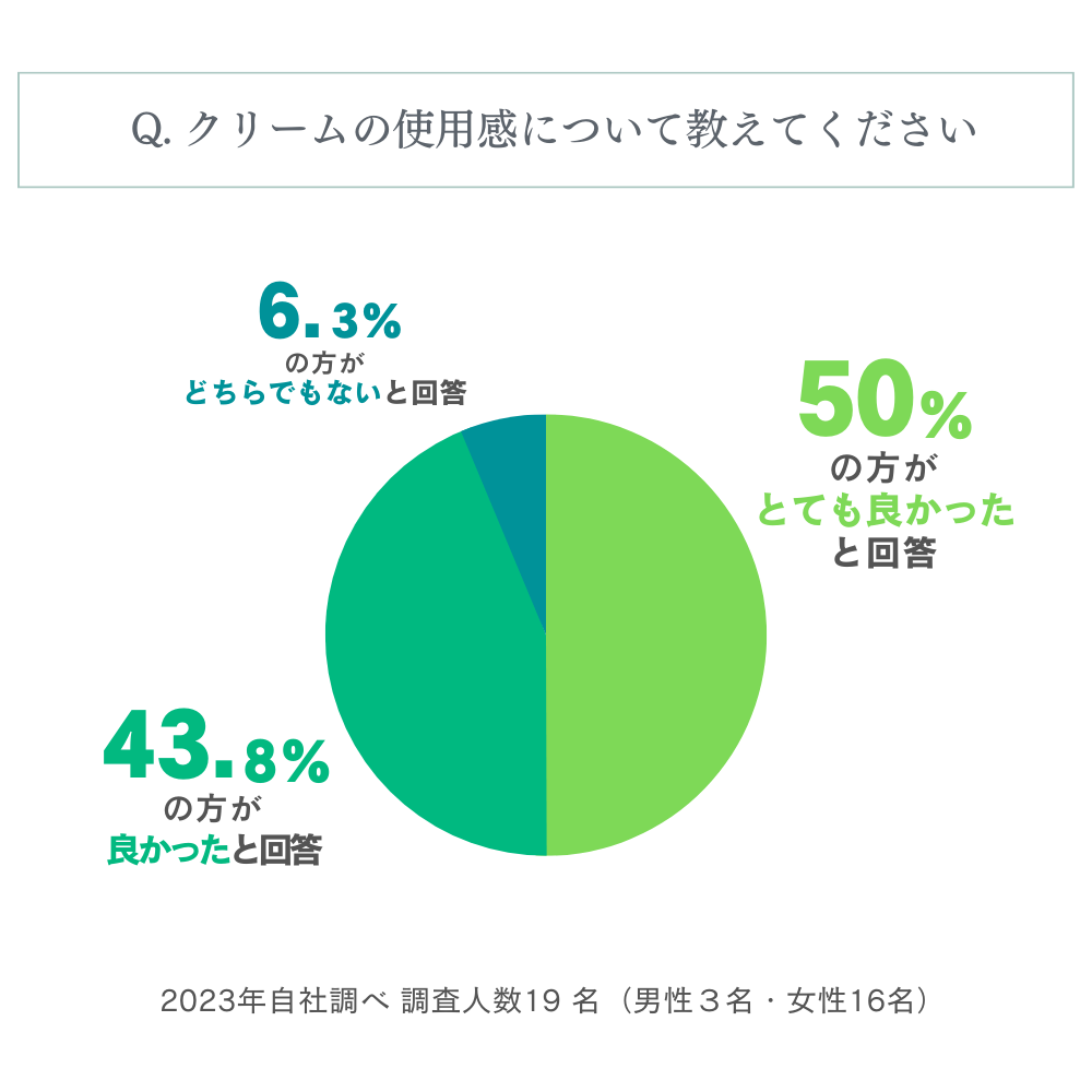 対象者は、CBD含有クリームの体感において次のような回答が得られました。