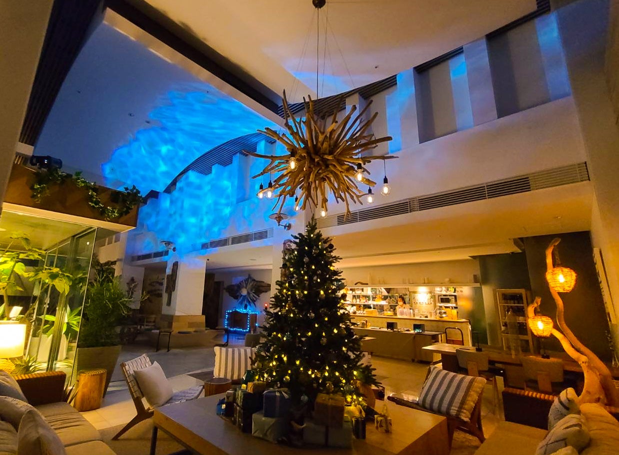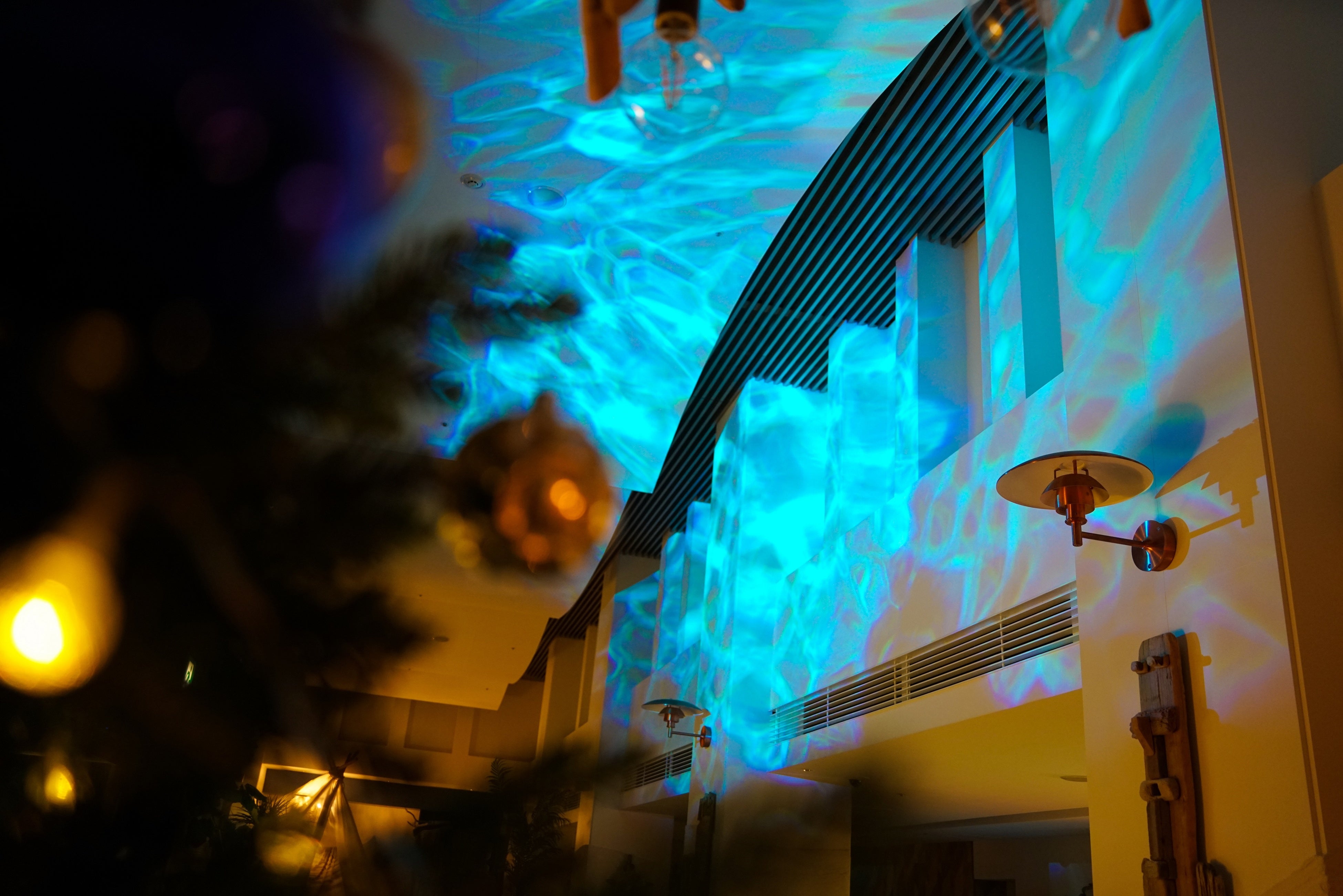 12月12日(日)より、ゴボを使用したキラキラと揺れる波のプロジェクター映像の投影を開始しました。