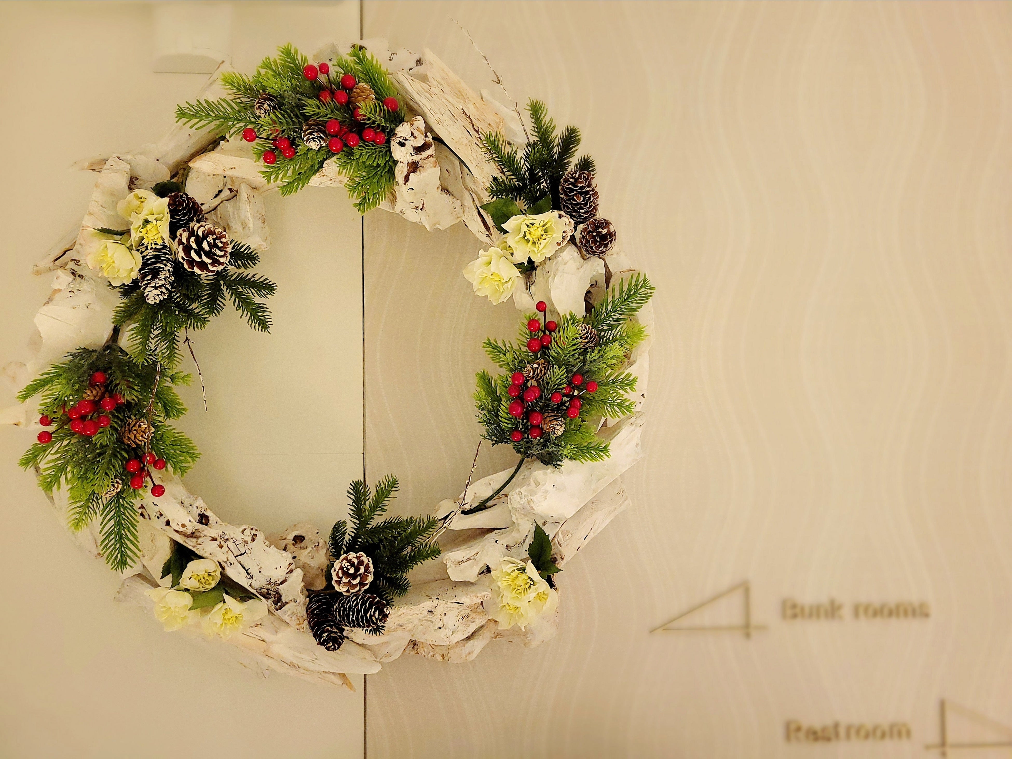 貝殻で出来たミニツリーやクリスマス仕様の流木のリース。