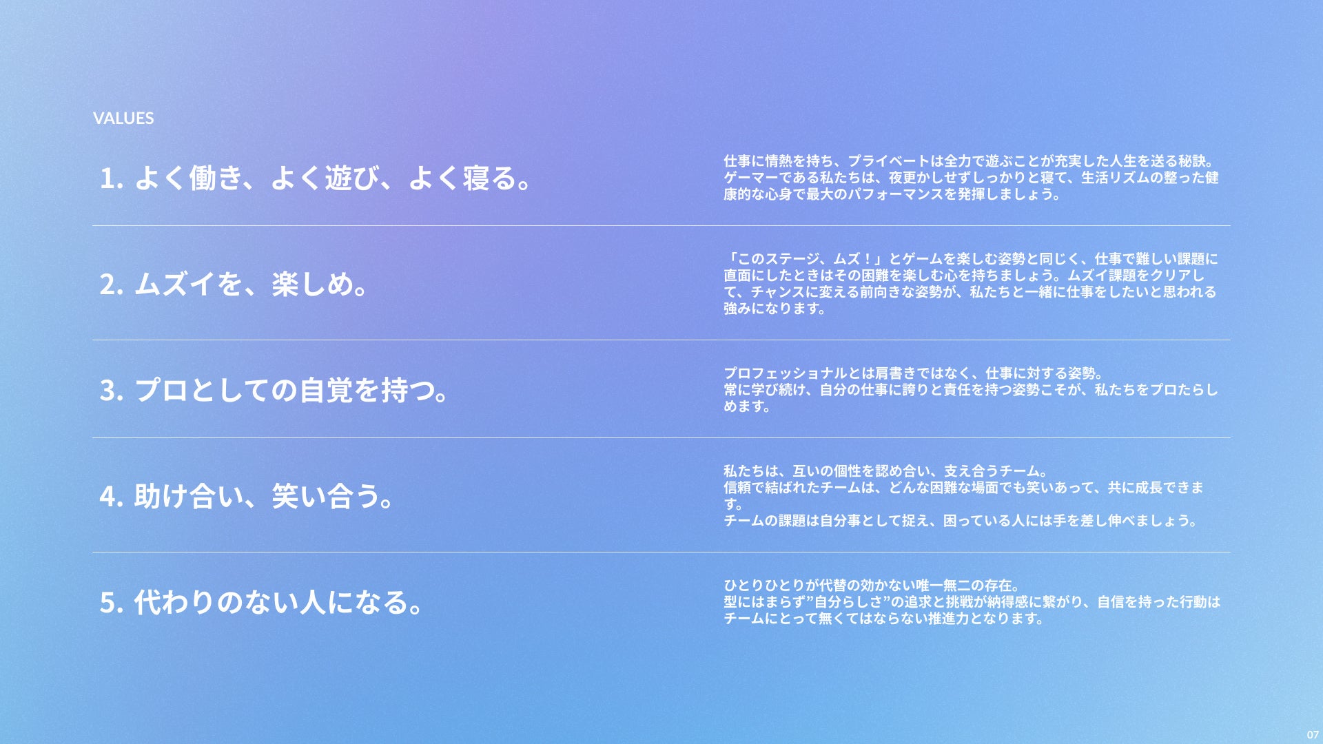 創業以来のゲーマー文化を活かした独自の企業文化と価値観を改めて体系化