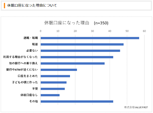 休眠口座になった理由については「退職・転勤」が最も多く、続いて「転居」という結果になりました。