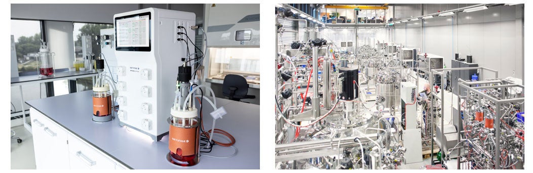 (画像左:ラボスケール研究の使用例、画像右:大規模製造の使用例)