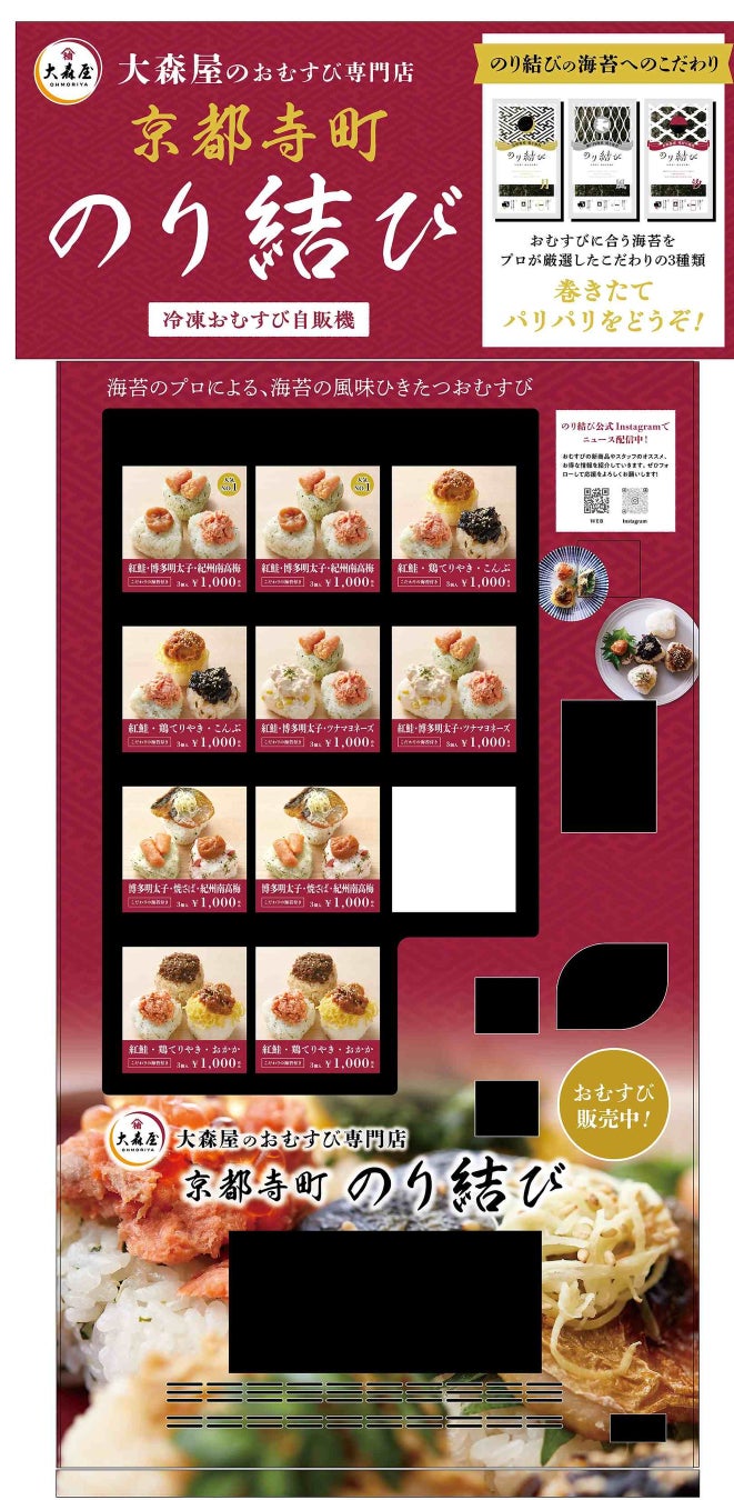 株式会社大森屋、“のりを選べる”おむすび屋『のり結び』の冷凍自販機を1月31日(水)に設置!