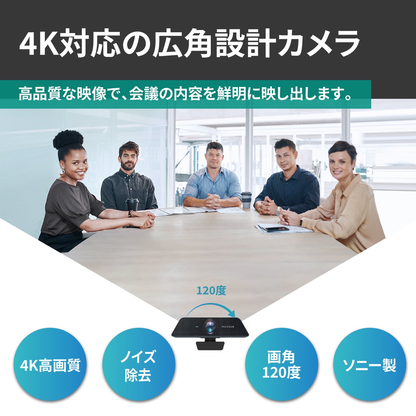 ■4K高画質な映像とコンパクトデザインで、いつでもどこでも快適な会議を始められます。