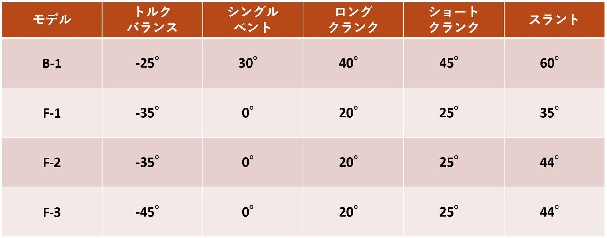 (ロングクランク、ショートクランク、シングルベント、トルクバランス、スラント)