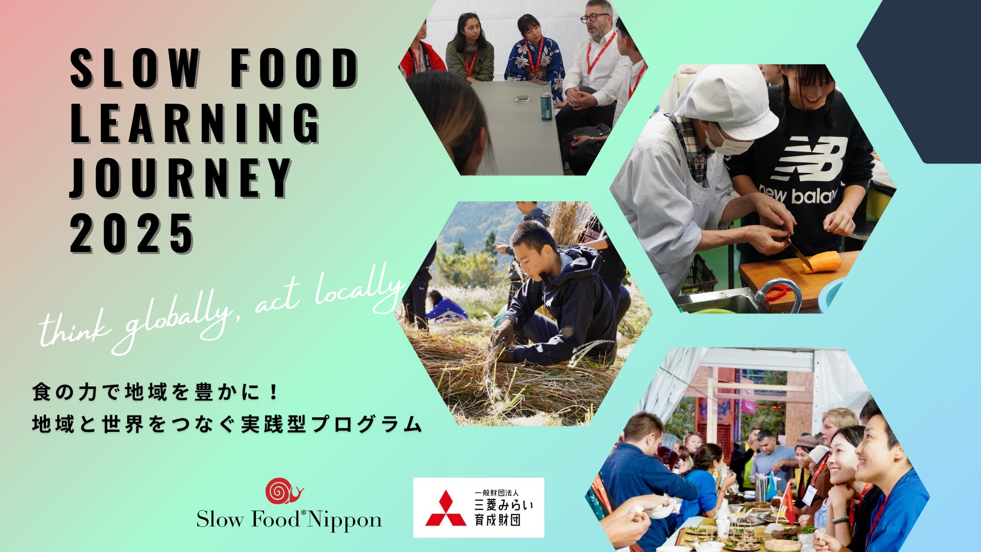 一般社団法人日本スローフード協会(代表理事:渡邉 めぐみ)が主催する「SLOW FOOD LEARNING JOURNEY」プログラムは、一般財団法人三菱みらい育成財団の2024年度助成事業に採択されました。2025年度も、昨年度に引き続き、卓越した能力を持つ人材を、早期に発掘・育成する教育プログラム「先端・異能発掘・育成プログラム」に対する助成事業の一環として実施されます。プログラム開始にあたり、持続可能な食に関する学びのプログラムに参加する高校1〜2年生と、大学生メンターとして高校生の学びを共にサポートする役割を担う大学生を募集します。