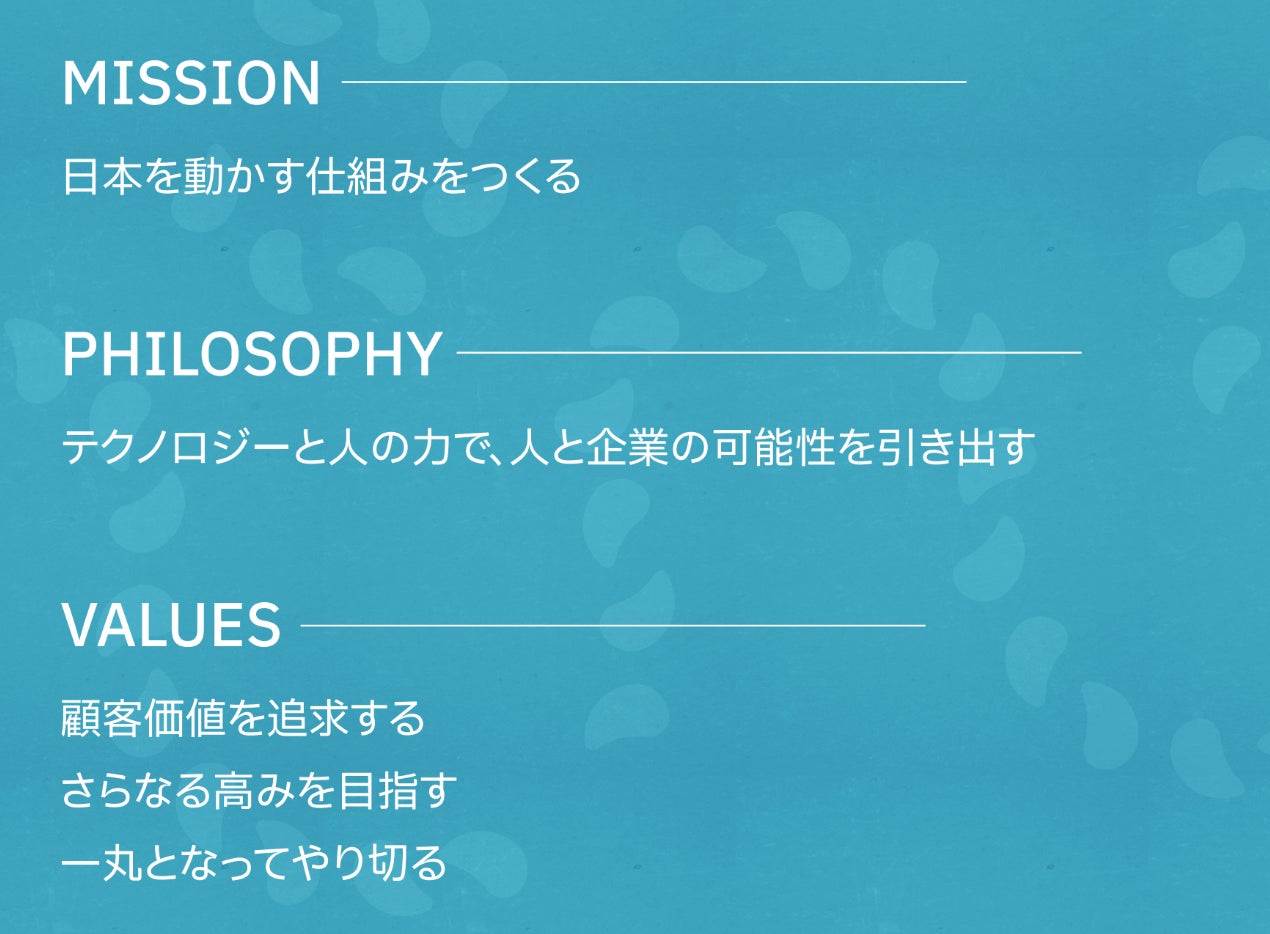 私たちの軸となる「日本を動かす仕組みをつくる」というミッションはそのままに、新しく「テクノロジーと人の力で、人と企業の可能性を引き出す」という、私たちが事業活動を通じて大事にしたいフィロソフィーを策定しました。AIやDXが進む時代にあっても、「人」が社会を動かす中心であるという信念のもと、エッセンシャルワーカー産業をはじめ、日本の基幹産業の発展に寄与していきます。