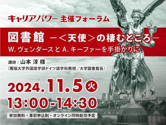 今回の講演では、彼らが図書館や本を扱ったいくつかの作品を取り上げ、<天使>というキーワードを軸に、そこに浮かんでくる意味を探ってみたい。