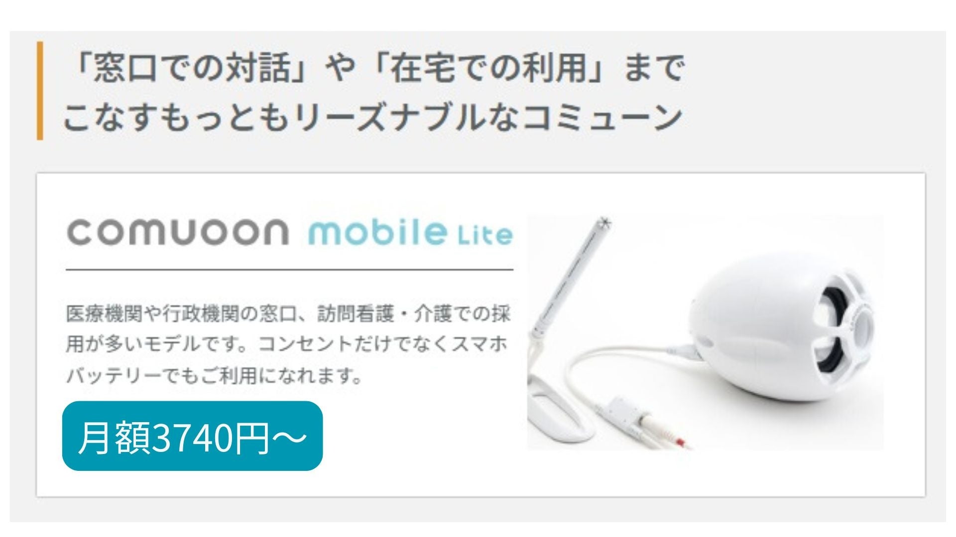医療機関や介護施設で導入5700箇所以上の対話支援機器「comuoon®(コミューン)」。月額3,300円~のレンタルサービス「comuRent(コミュレント)」を開始