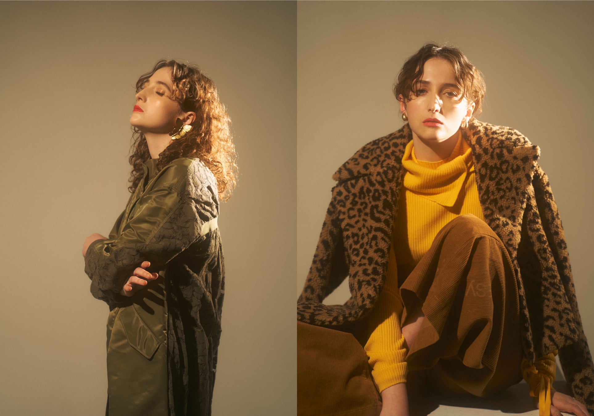 今シーズンのテーマである「少女と森」は、「RE SYU RYU」が得意とするレトロとモダンの融合で、幼い頃の夢のような森の中を彷徨う世界を表現したコレクション。森や土からインスピレーションを得たブラウンやカーキといったアースカラーを中心に、ワードローブに欠かせないアイテムが揃います。流れるようなフォルムとツヤ感のあるカシュクールアシンメトリーワンピースとスタンドパフスリーブブラウスは、クラシカルなデザインでありながら、オリジナル柄を取り入れたモダンなピース。