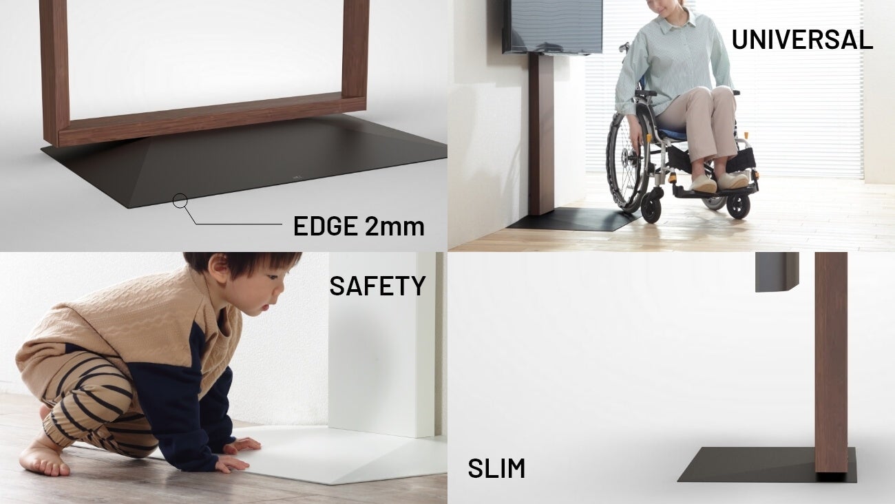 特許取得の「3Dベース」は、段差わずか2mmの設計で、お子さまやお年寄りの方も安心してご利用いただけます。つまずきの心配がないので、どなたでも安全にテレビを楽しめる空間になります。