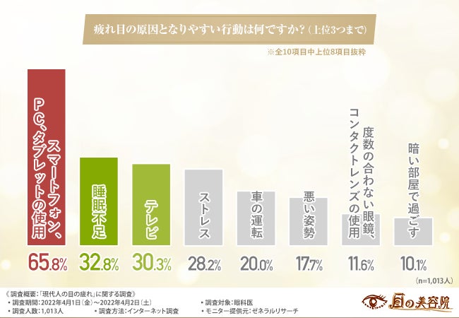 - 疲れ目の原因となりやすいもの、医師が考えるNo.1は、やはりスマートフォンやPC