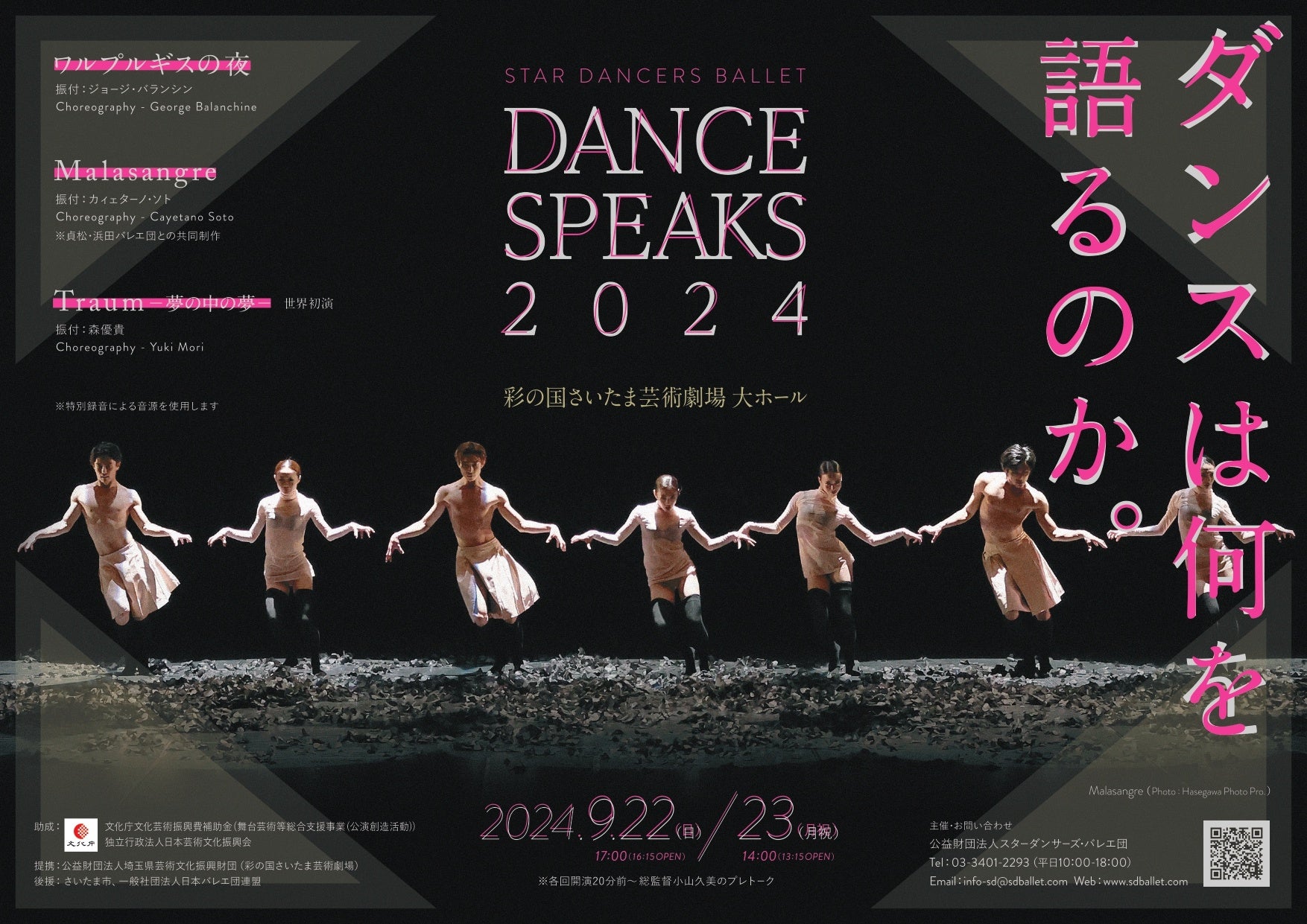 ピナ・バウシュの師として知られるクルト・ヨースの不朽の名作「緑のテーブル」のほか、日本で上演機会の少ないを作品を数多く紹介してきたスターダンサーズ・バレエ団の「Dance Speaks」シリーズ。2024年9月に開催される今回の公演では、世界有数のバレエカンパニー「ニューヨーク・シティ・バレエ」の創設者かつアメリカンバレエの⽣みの親でもある巨匠振付家ジョージ・バランシン、テクニカルで激しく意外な展開を見せる振付作品を次々に創作し、世界各地のバレエ団から引く手あまたのスペイン出身の振付家カィェターノ・ソト、そして日本人として初めて欧州の劇場において芸術監督を務めた気鋭の振付家・森優貴の3人の作品を上演いたします。