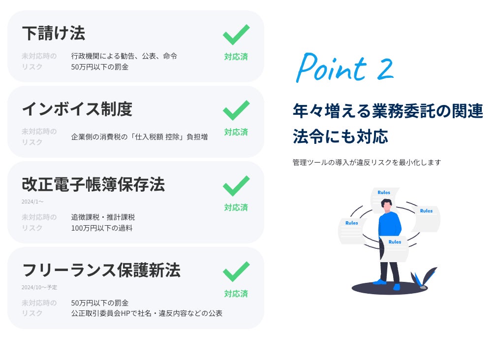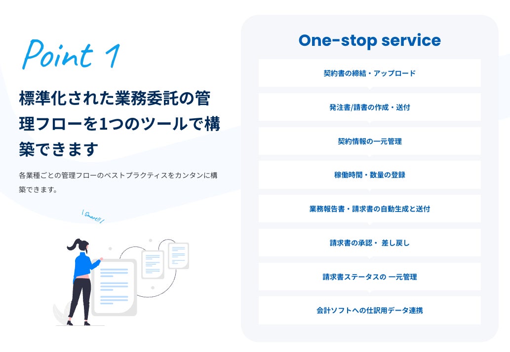 本機能により、発注企業側にとって負担の大きい受注者側への承認の催促を行う手間も省力化することができ、よりスムーズな業務委託を実現します。
