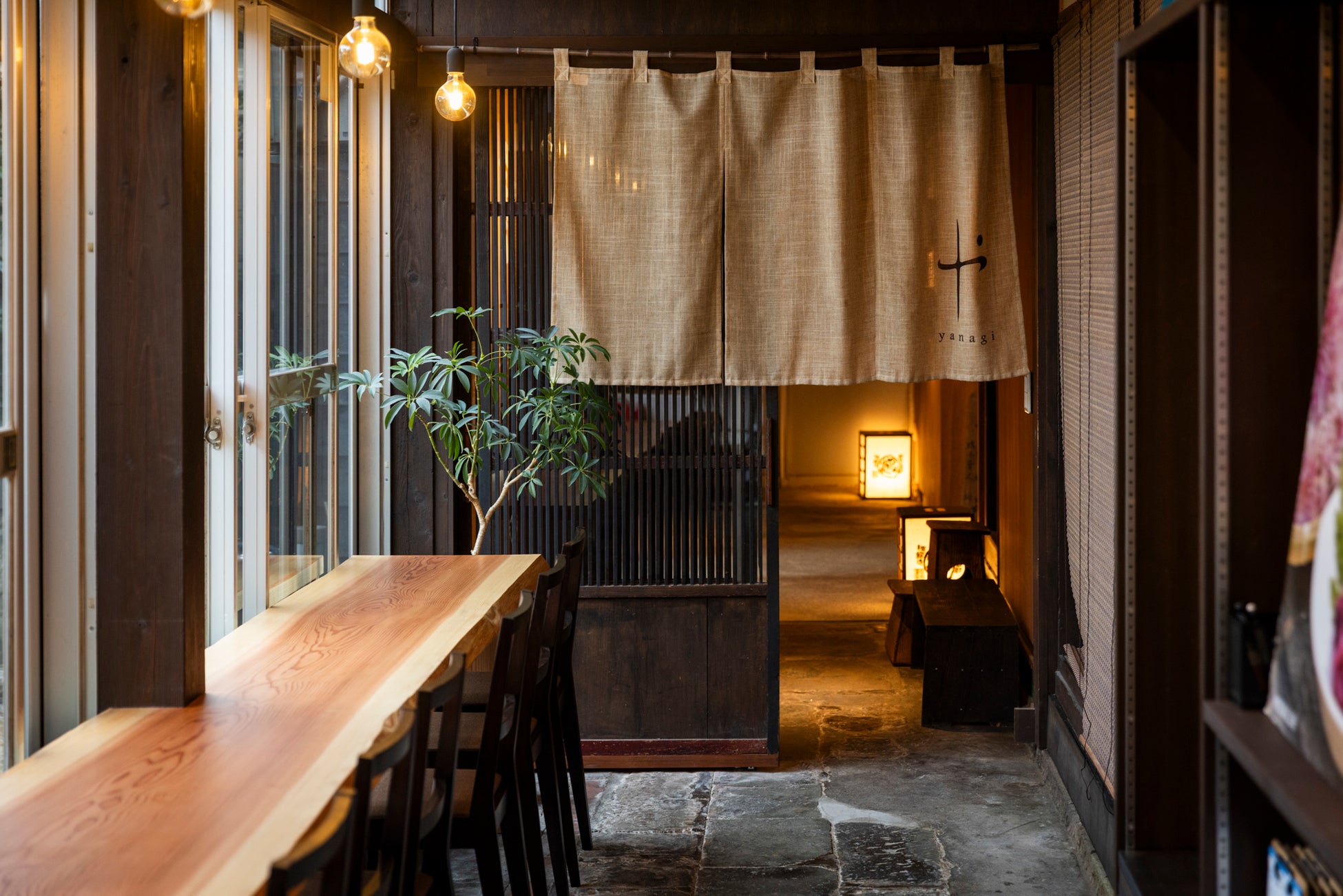 元々は柳醸造のルーツでもある醤油を仕込んでいた場所でもあり、天井部分は、リノベーションの際に壁を剥がしたことで露出した、立派な梁と骨組みをそのまま残しています。