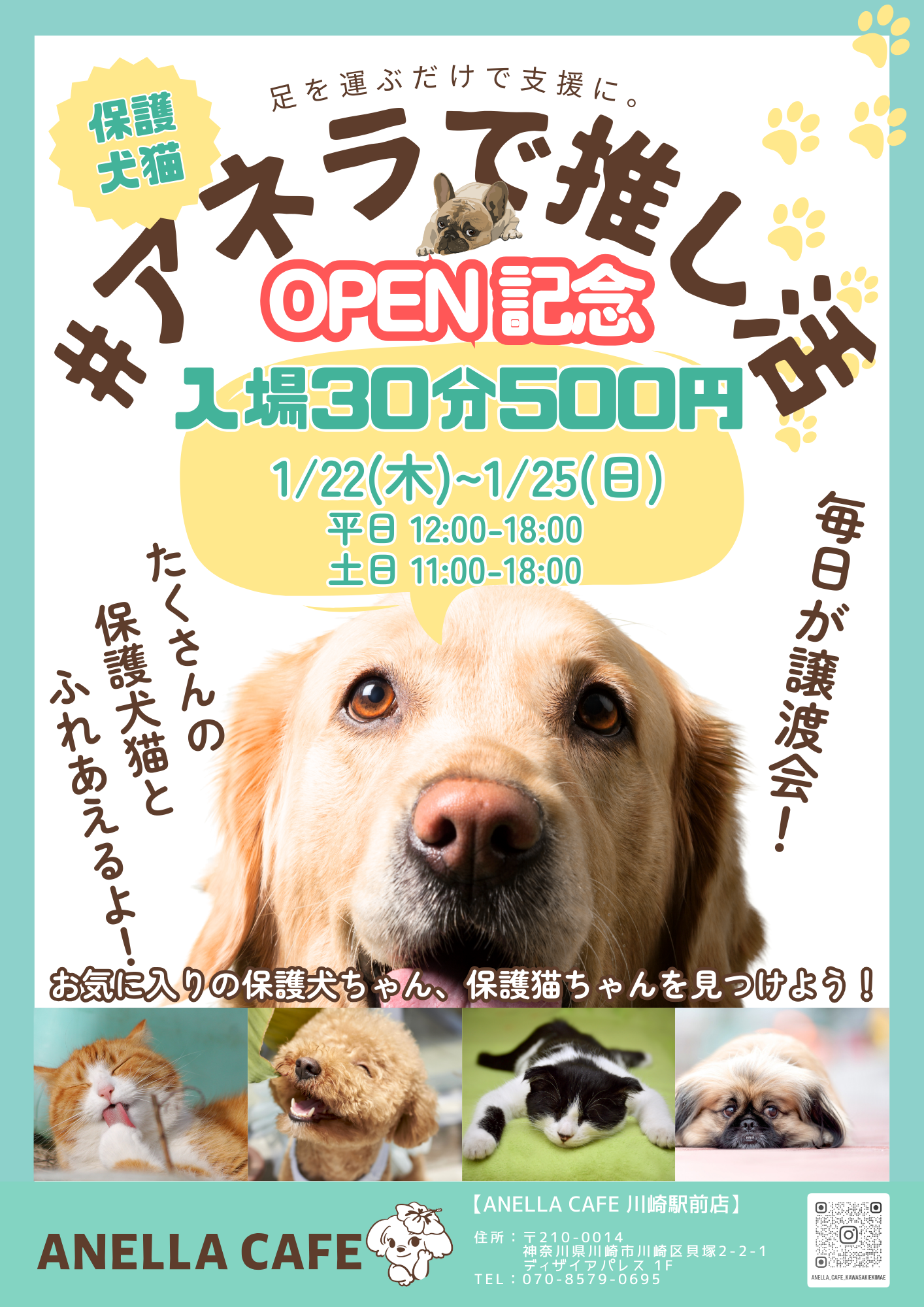 【神奈川・川崎】全国20店舗目となる保護犬猫ふれあいカフェ「ANELLA CAFE 川崎駅前店」1月22日オープン