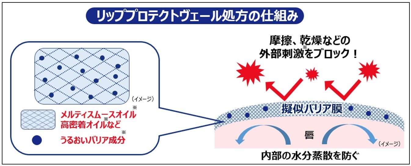 「リッププロテクトヴェール処方」で擬似バリア膜を形成。外部刺激(※)から守り、しっとり健やかな唇へ