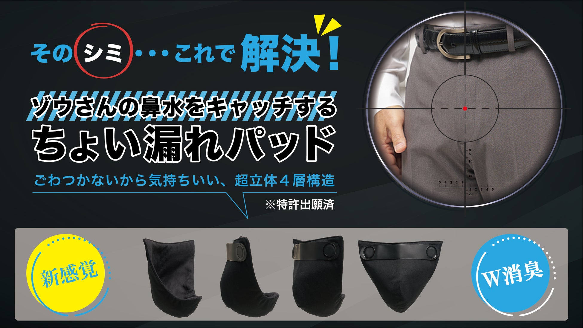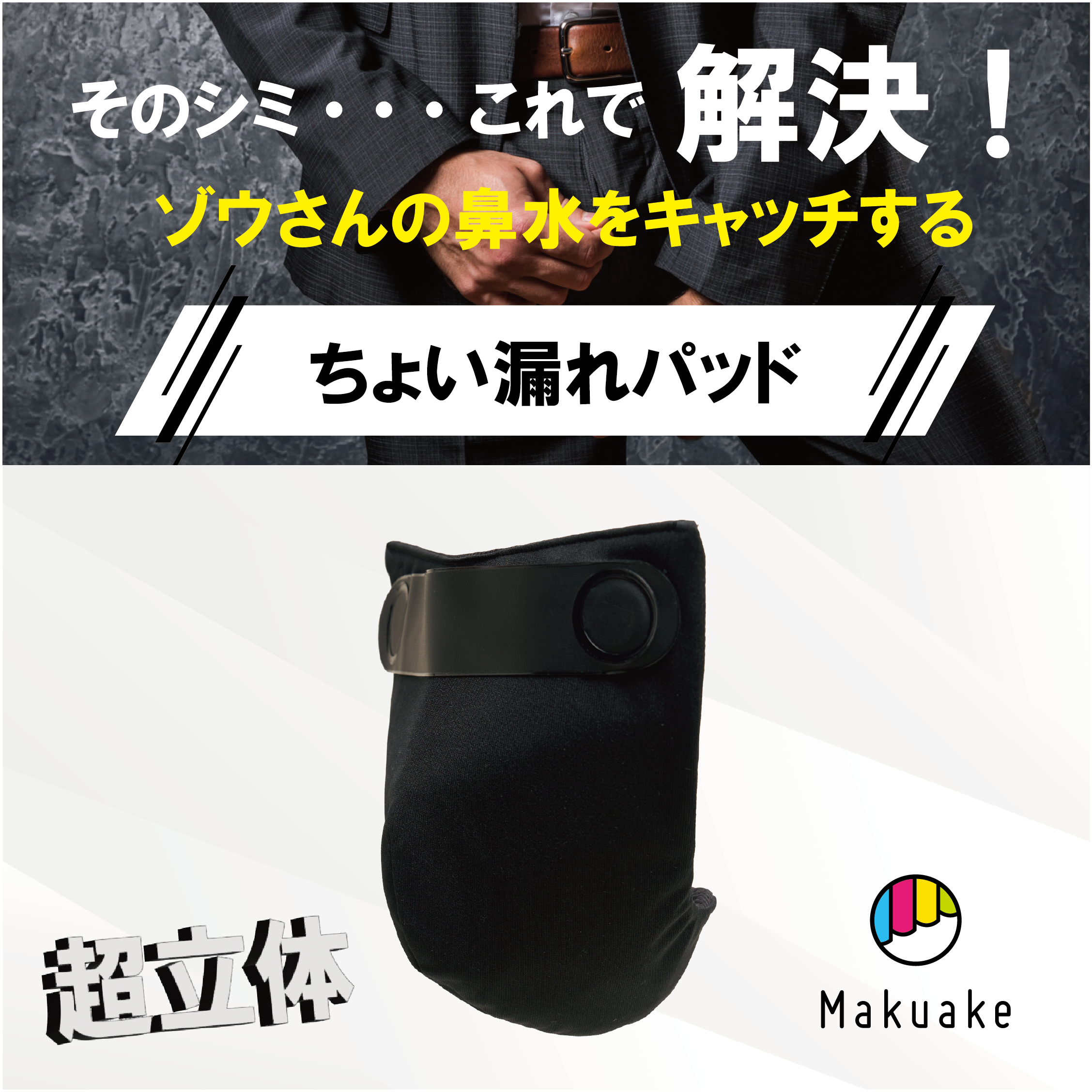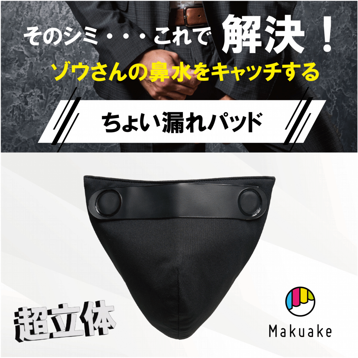 男性が人知れず悩んでいる”尿漏れ”問題を解決する新感覚商品 ゾウさんの鼻水をキャッチする【ちょい漏れパッド】をMakuakeにて販売開始