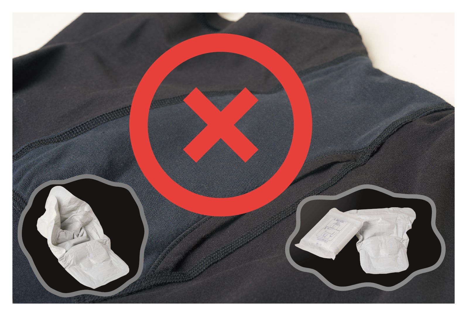 ※陰嚢を[ちょい漏れパッド】で上側へ持ち上げないようにしてください。