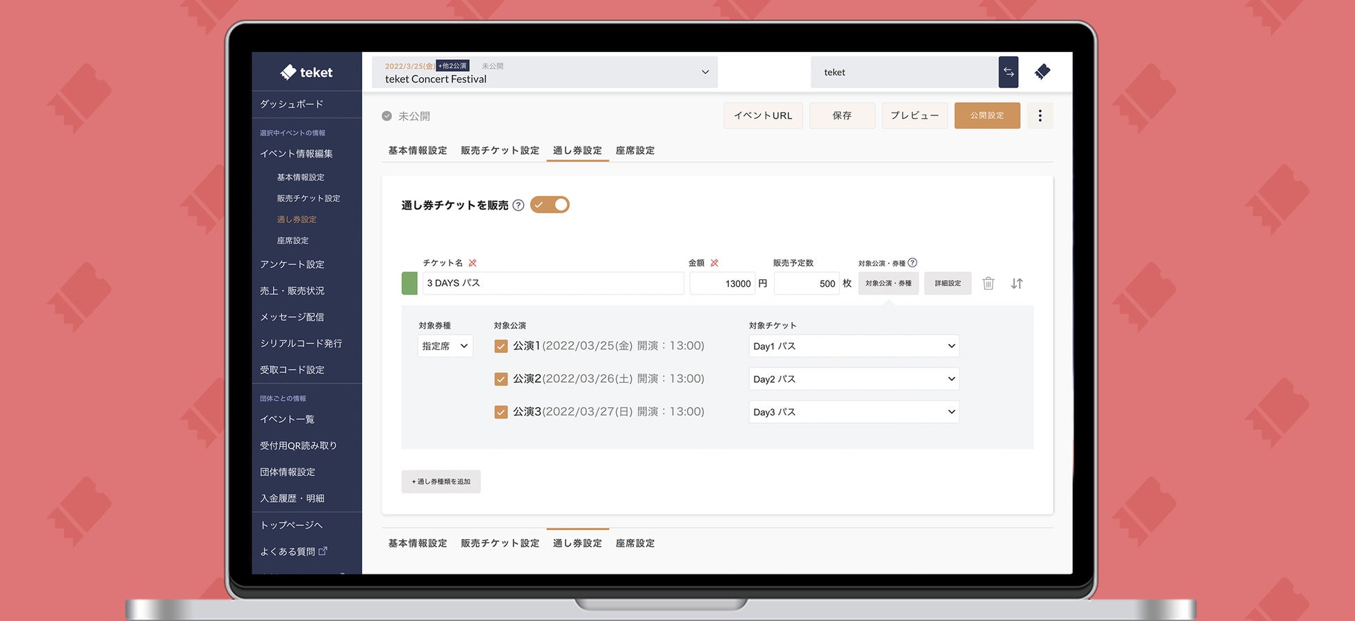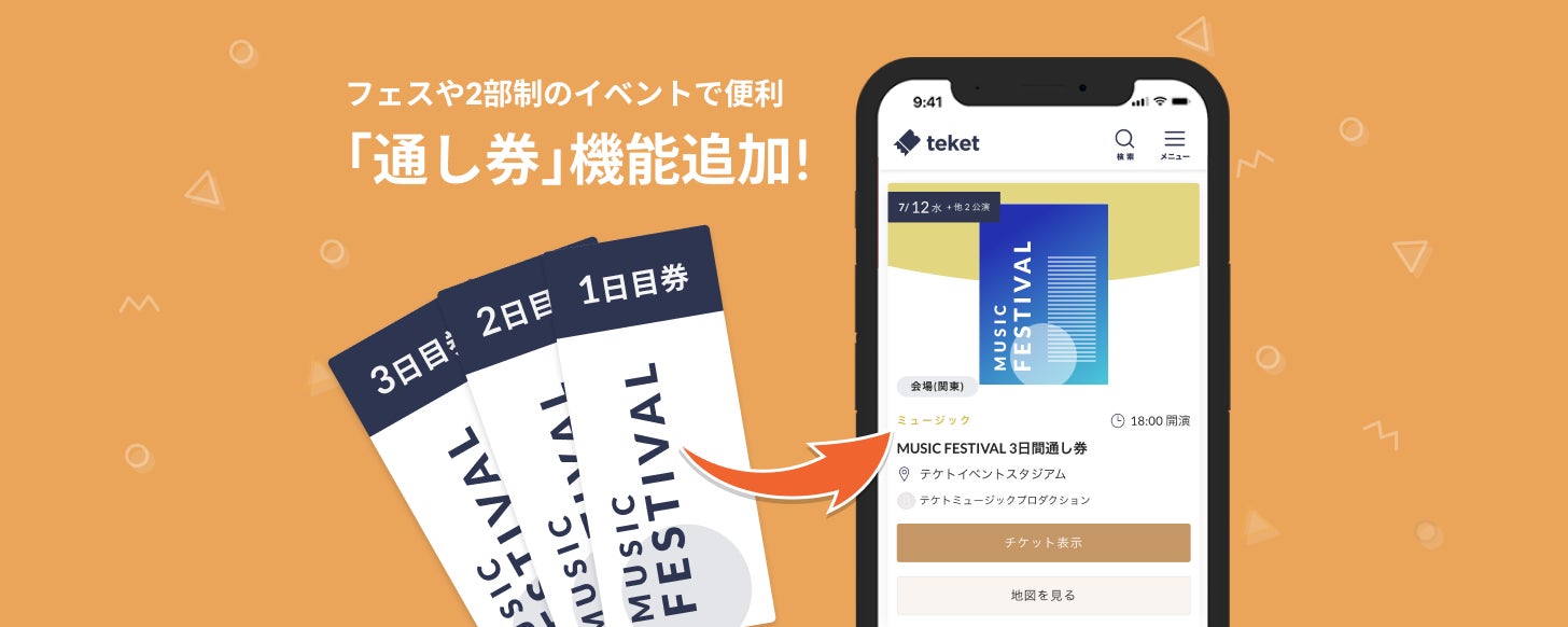 電子チケット販売サービスteket、フェスや2部制のイベントなどに便利な「通し券」機能を追加