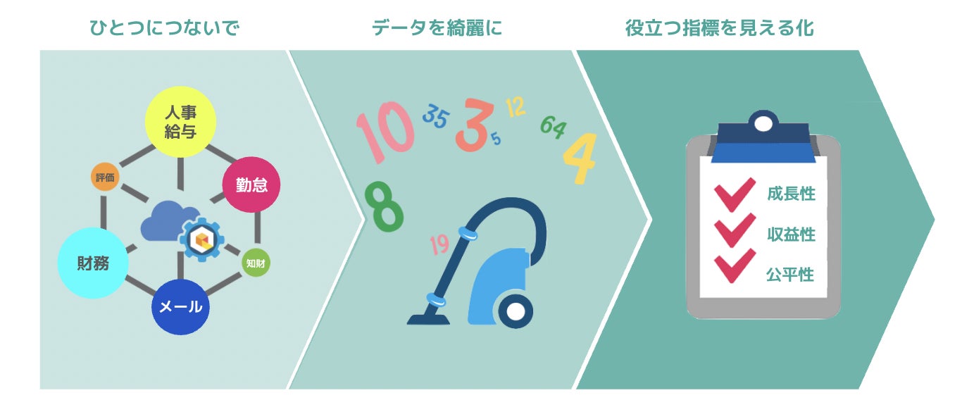 「健全性」…組織内の各種コミュニケーション指標、残業時間、産休育休取得率など、組織の健全度を表す指標。