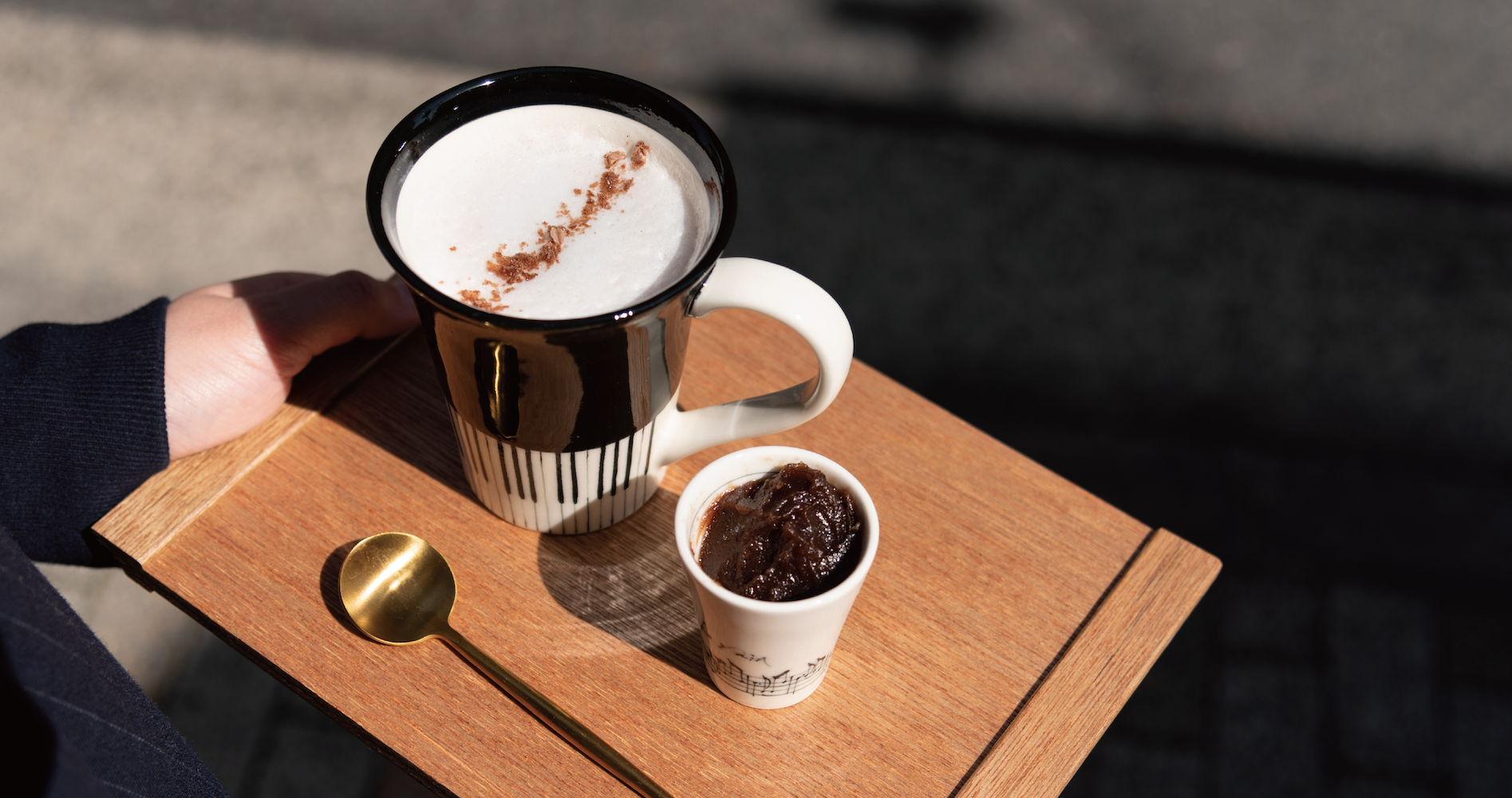 ジャズ羊羹クラシックのあんこから作ったミチカケでしか味わえない特製の黒糖あんこペーストを使用した限定メニューをご用意。(黒糖あんこラテ、黒糖あんこオレ、胡桃の黒糖あんバタポーネ)
