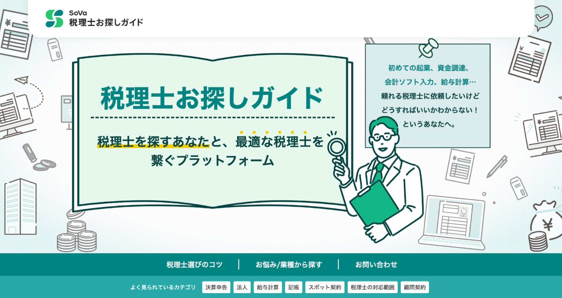株式会社SoVa(本社:東京都中央区、代表取締役:山本健太郎、以下「当社」)は、税理士の探し方やおすすめの依頼方法を紹介するメディア『税理士お探しガイド』(https://sovagroup.co.jp/media_top/)をリリースいたしましたのでお知らせいたします。