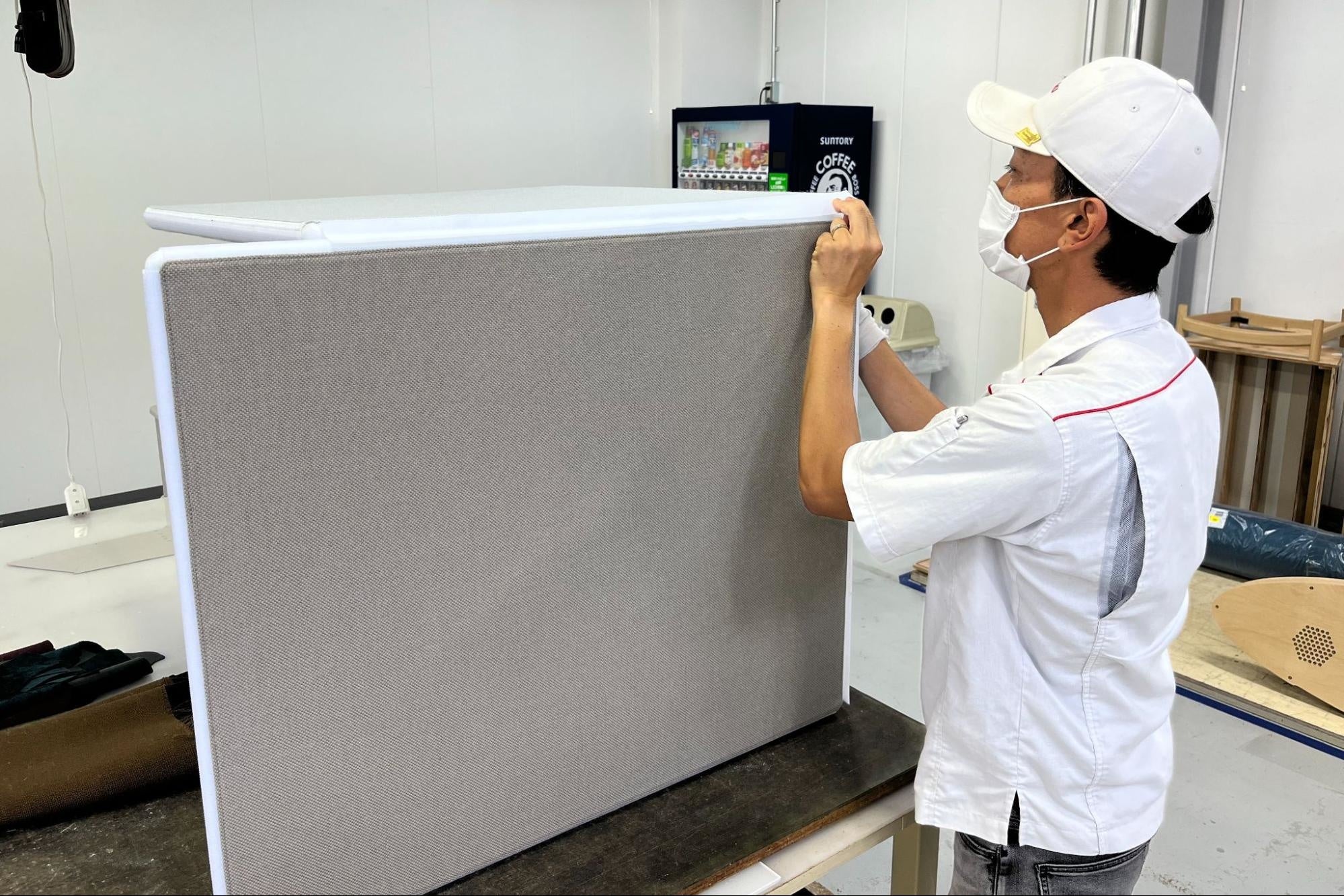 カリモク家具株式会社の工場で職人の方々により実制作が進められました。