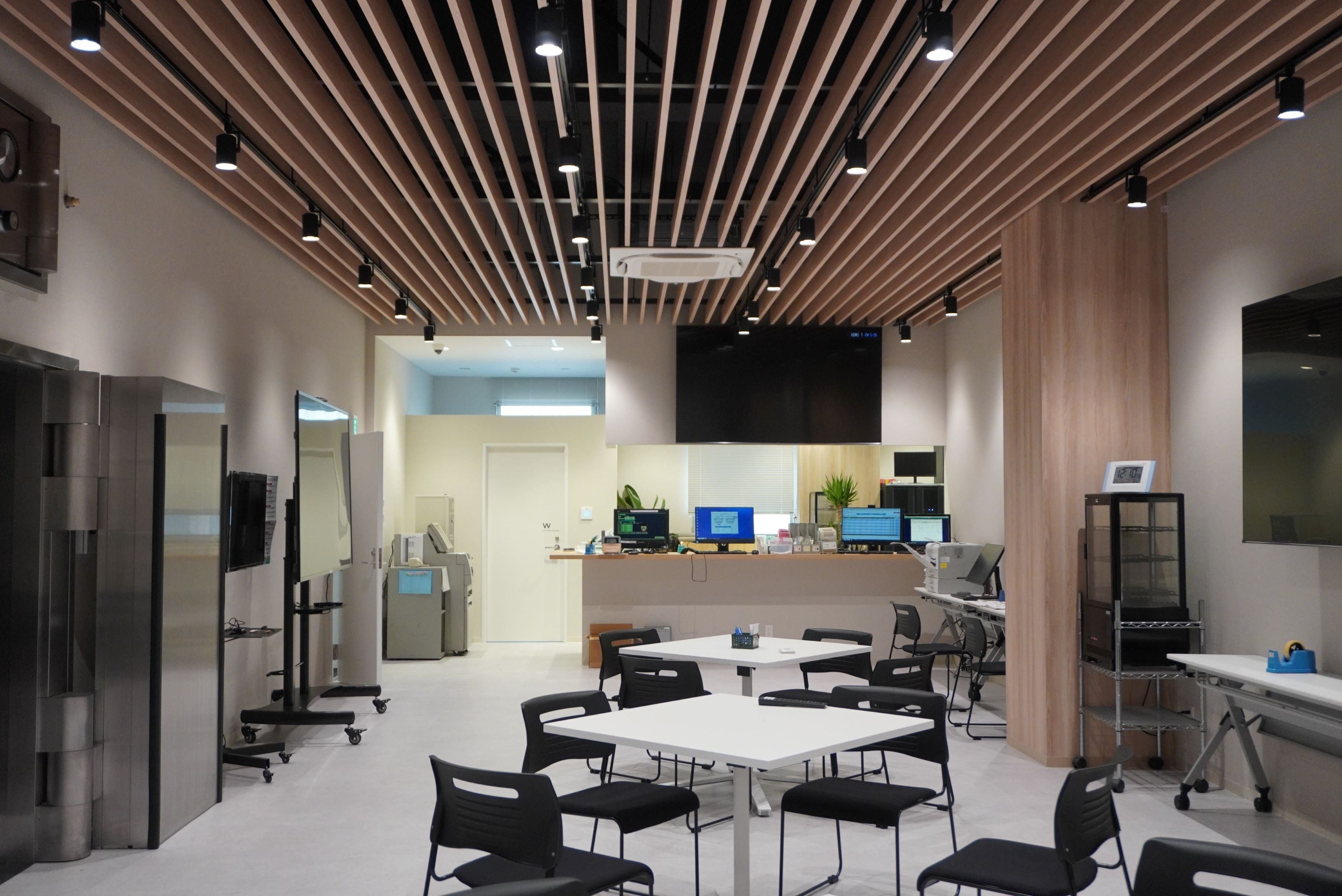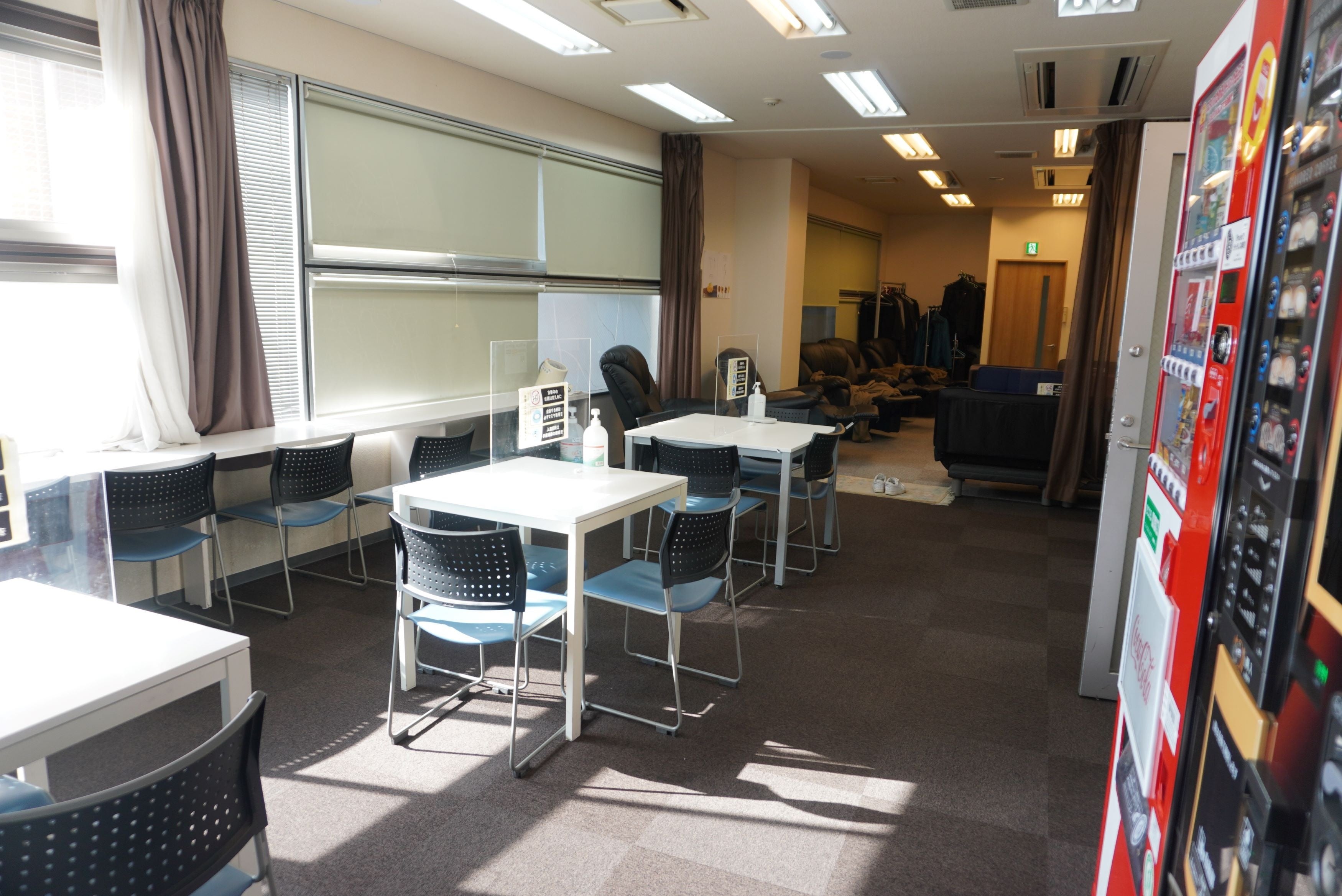 MKでは従業員が働きやすい職場にする取組みを行っており、直近では2023年8月に山科営業所の移転リニューアルを行いました。休憩室はまるでカフェのようなリラックス空間と社員に好評です。