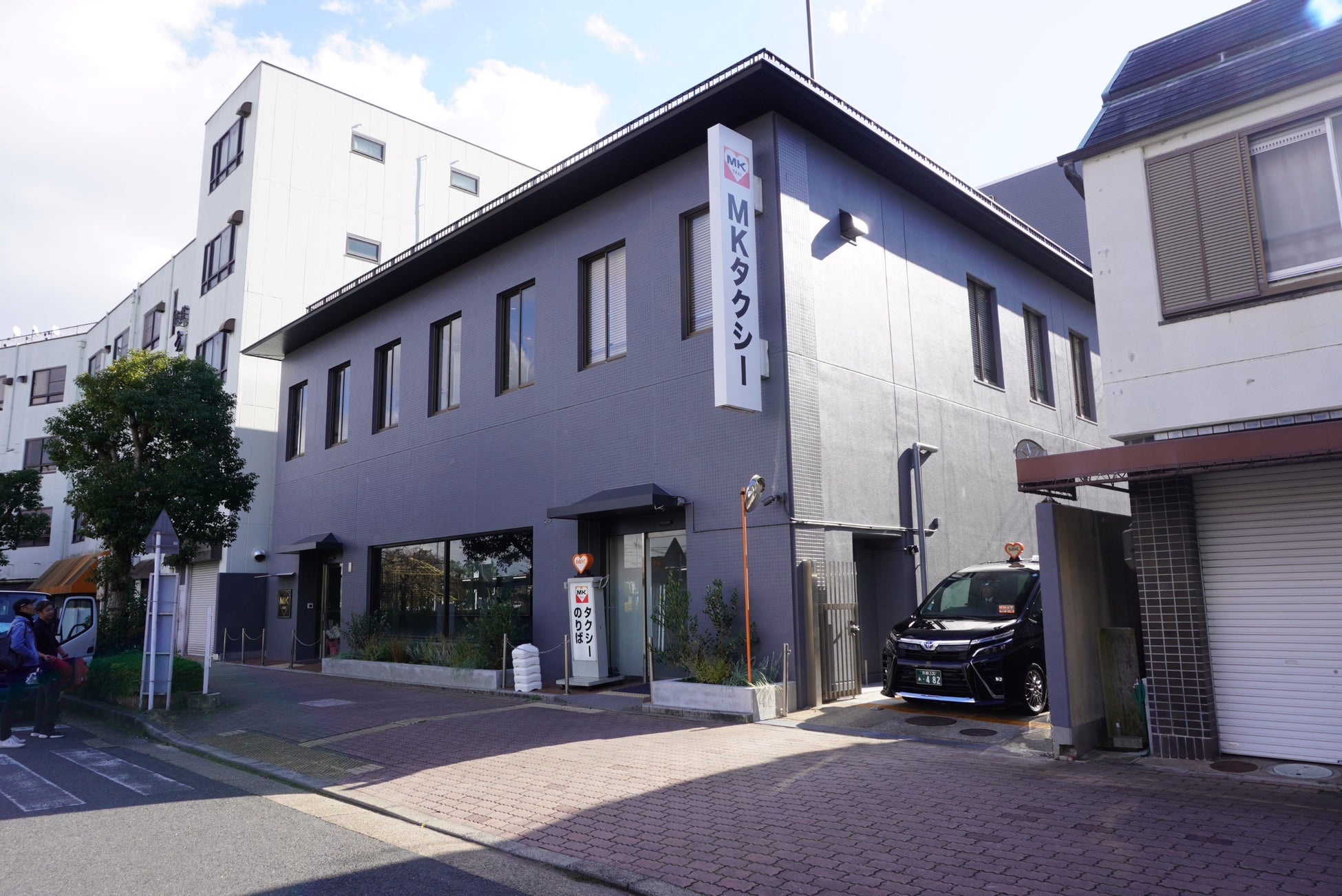 写真)八幡営業所外観。MKタクシー八幡のりば