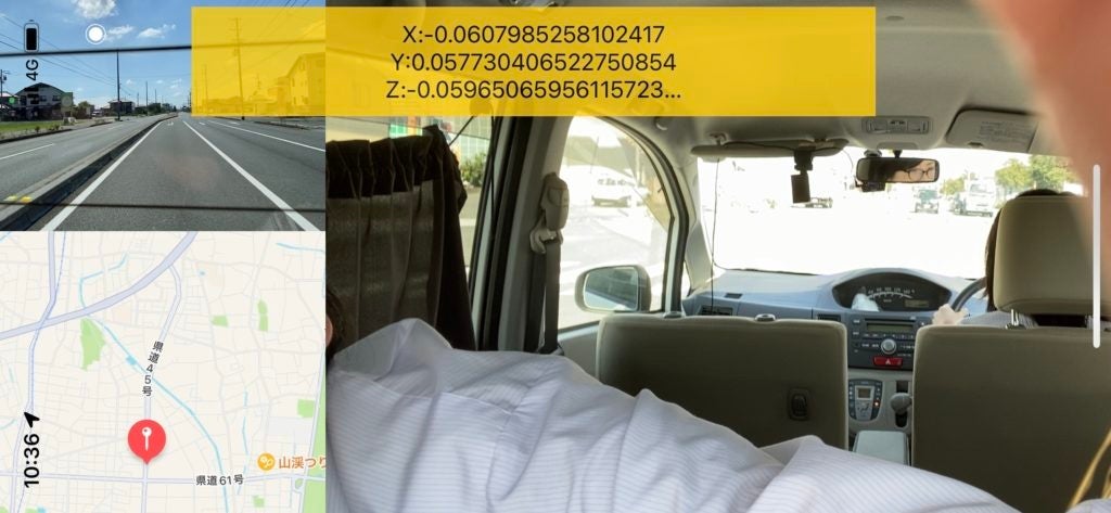 実際に、実験中の車内の様子は離れた場所にいるスタッフもスマートフォンで確認できました。