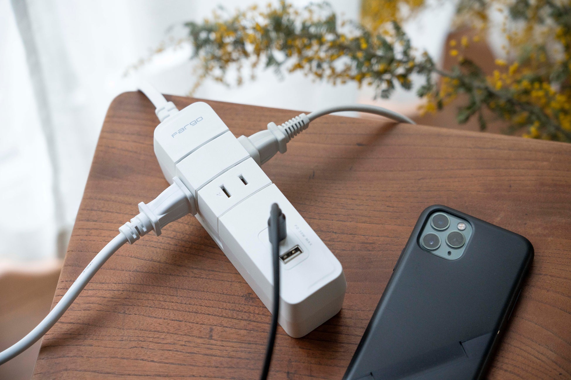 デザイン電源タップの専門メーカーFargo(ファーゴ)はUSB Power Delivery規格65Wの高出力でAC挿し口と併せて最大10台の電源確保が出来る「T5」を発売しています。
