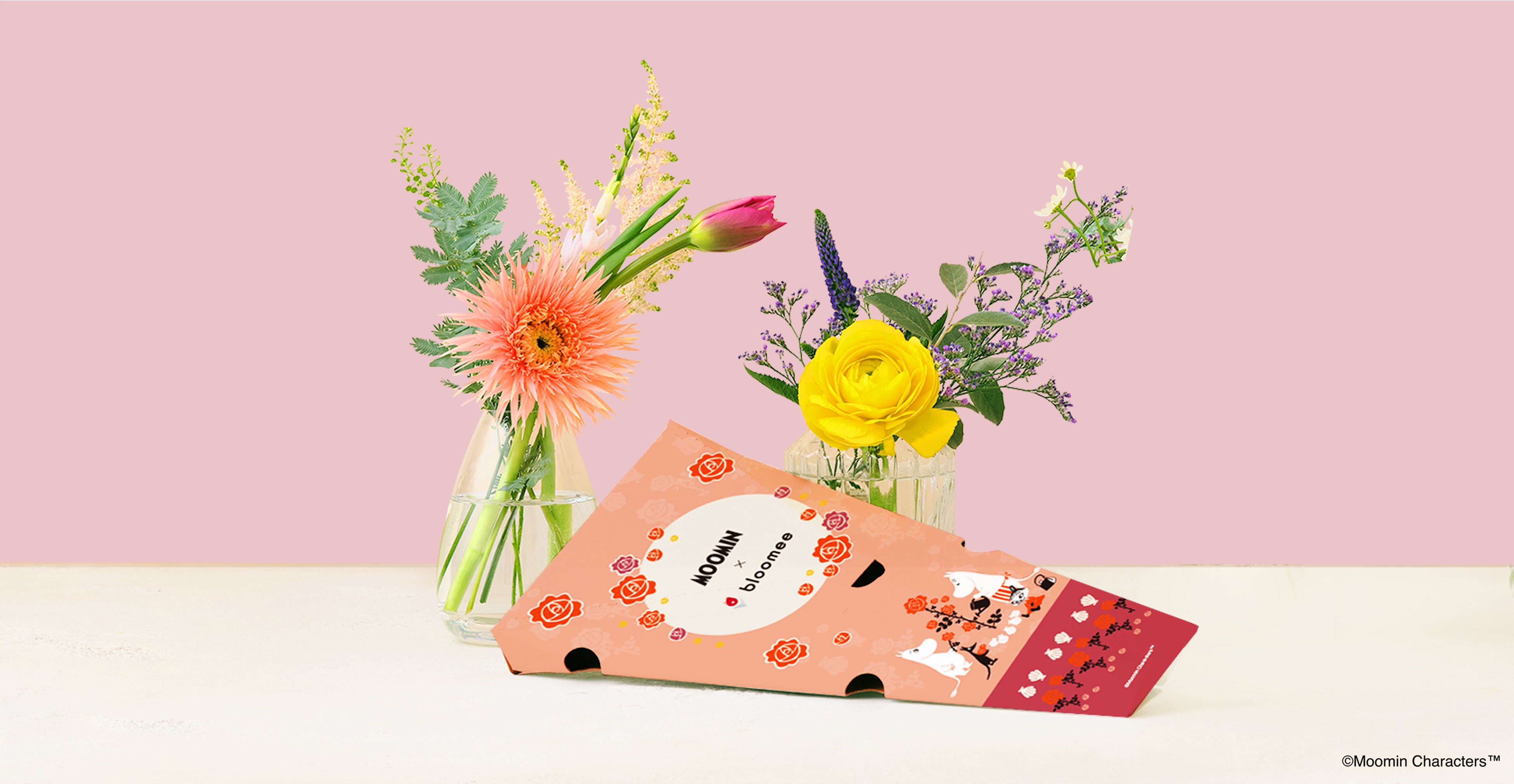 会員数10万世帯を突破した、お花の定期便(サブスクリプション)「ブルーミー(bloomee)」と「ムーミン」がコラボレーションをいたします。4月から数量限定で「Moominmamma’s Rose」をモチーフにした限定パッケージでお届け。さらに新規登録者の方には数量限定でムーミンデザインのビニール花瓶をプレゼントいたします。