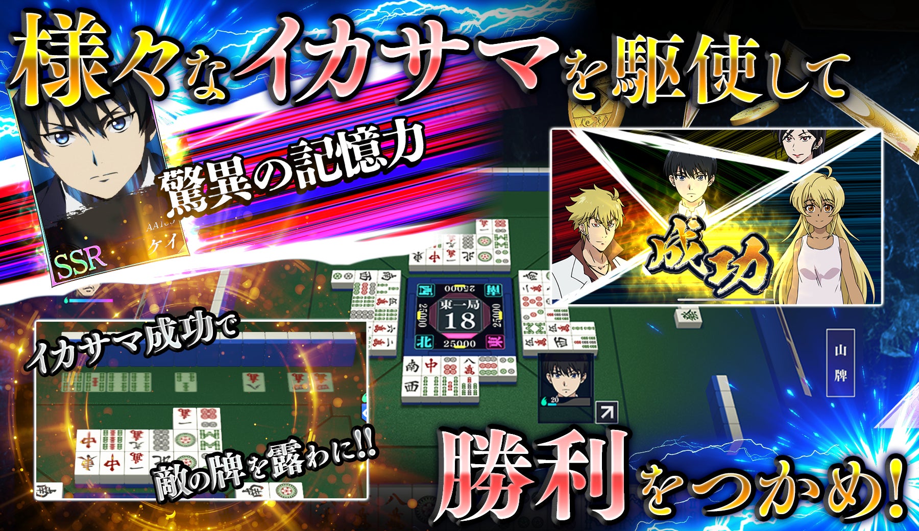 原作の世界観をそのままに、キャラクターの技、イカサマ、能力を『スキル』という形で使用し、ランキング上位を競い合う麻雀ゲームです。ルールは4人東風戦を採用しました。ゲーム内各所にて応募ポイントを獲得することで、『懸賞』に応募することができます。