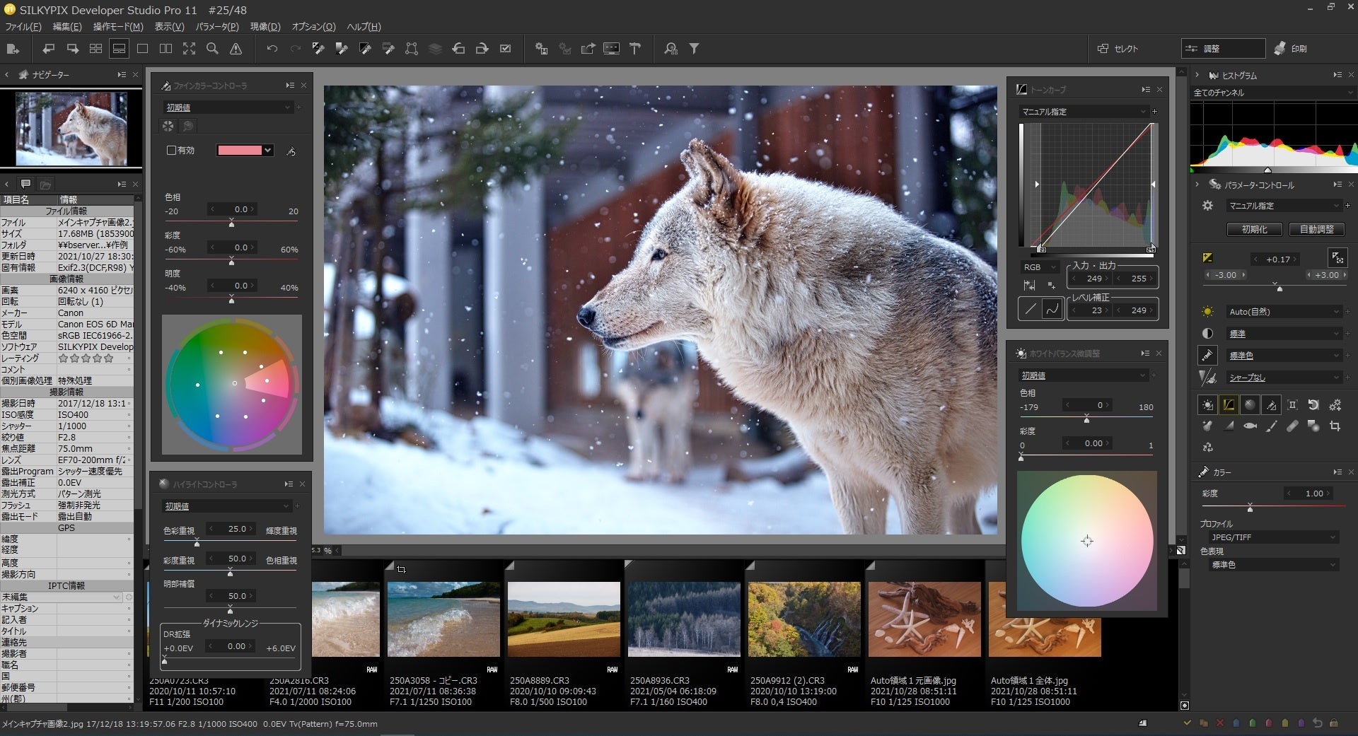 SILKYPIXシリーズは、デジタルカメラで撮影された「RAWデータ」を高画質に編集し、美しい写真に仕上げる事のできる純国産の「RAW現像ソフト」です。カメラメーカー各社のRAWデータ800機種以上に対応しており、多くのプロカメラマンや写真愛好家から支持されています。また、カメラ同梱のソフトウェアとして多くのカメラメーカーからもご採用いただいております。