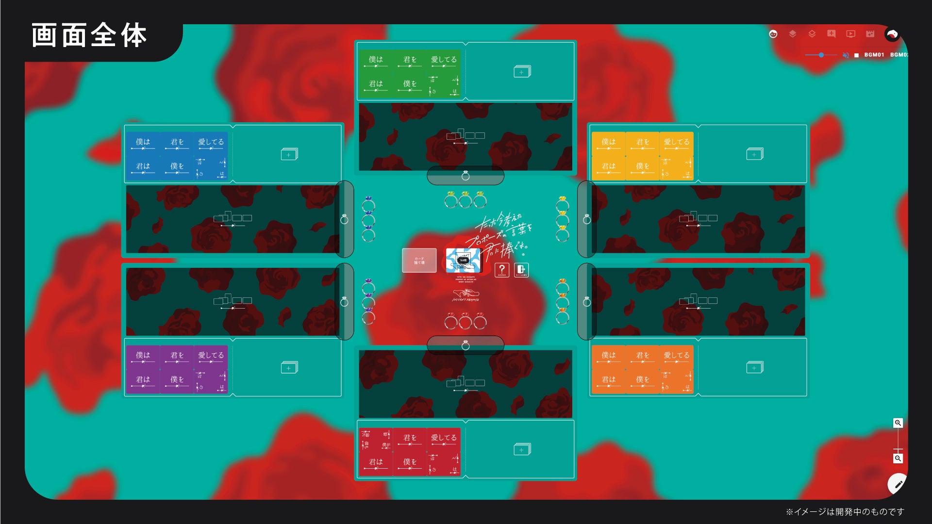 プレイヤーに割り当てられる個人スペースでは、下部に基本カードや単語カードを置くことができ、上部のスペースでプロポーズの言葉を作ることができるようになっています。