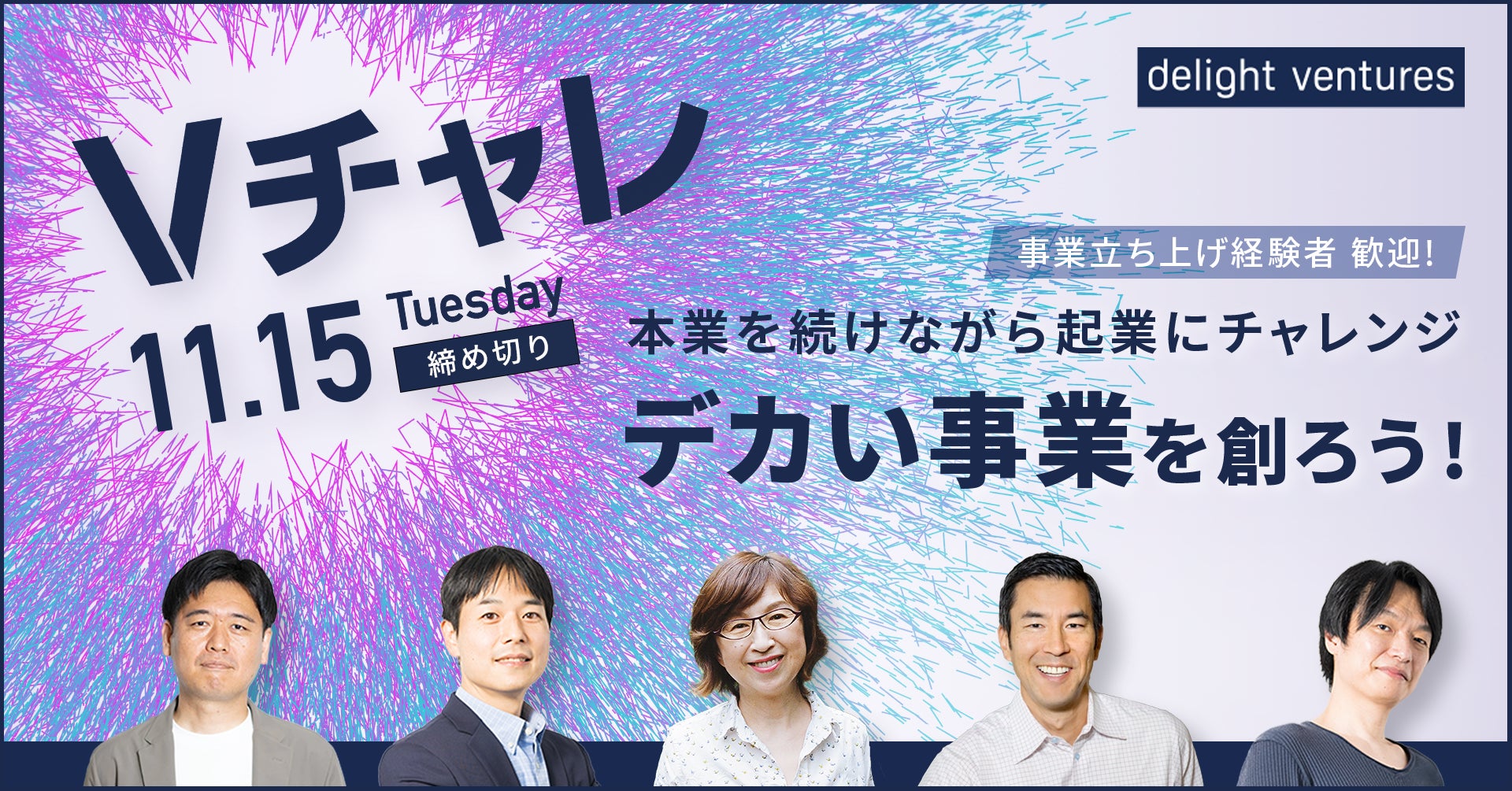デライト・ベンチャーズは、スタートアップエコシステムの活性化が、日本の国際競争力向上にとって不可欠と考え、2019年の創業以来、起業機会の創出に注力してきました。Vチャレは、新規事業の立ち上げなどを経験した優秀なビジネスパーソンが、自身の起業に向けての新たなチャレンジを支援するプログラムです。本業を継続しながら参加できる環境を用意することで、リスクをコントロールしながらの事業創出を可能とし、起業への高い関心を持ちながらも、ハイリスクのチャレンジに躊躇しがちなビジネスパーソンの挑戦を後押しします。