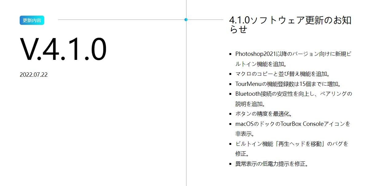 - TourBoxのコンソールソフトは常に進化し続けています
